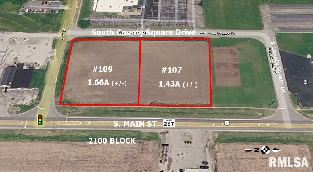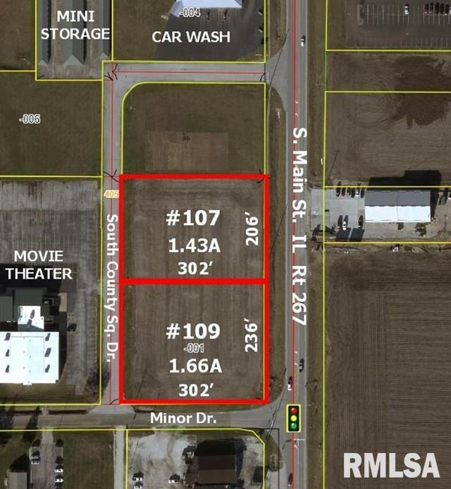 GREATLY REDUCED PRICING from prior marketing. Just Reduced again! Would encourage buyer to buy both lots while you can! Unimproved Building Lot. High Visibility, HIGH TRAFFIC counts upwards of 9100 avg cars/day per IDOT. Great Frontage in the 2100 Block of South Main. Mailing address and access via S County Sq. Dr. Located but a half mile from 4 Major National Motels and Love’s Travel Center. Many opportunities for a location like this! Would make nice restaurant location, especially with the proximity to the motels, Love’s, and the I-72 Interchange. One of two adjacent commercial lots. Can buy one, or buy both for up to 3.09 (+/-) Acres and 440′ of visible Main Street Frontage. Excellent opportunity for a business with a need for outdoor Auto related need. Zoned B-2 Covenants Apply.