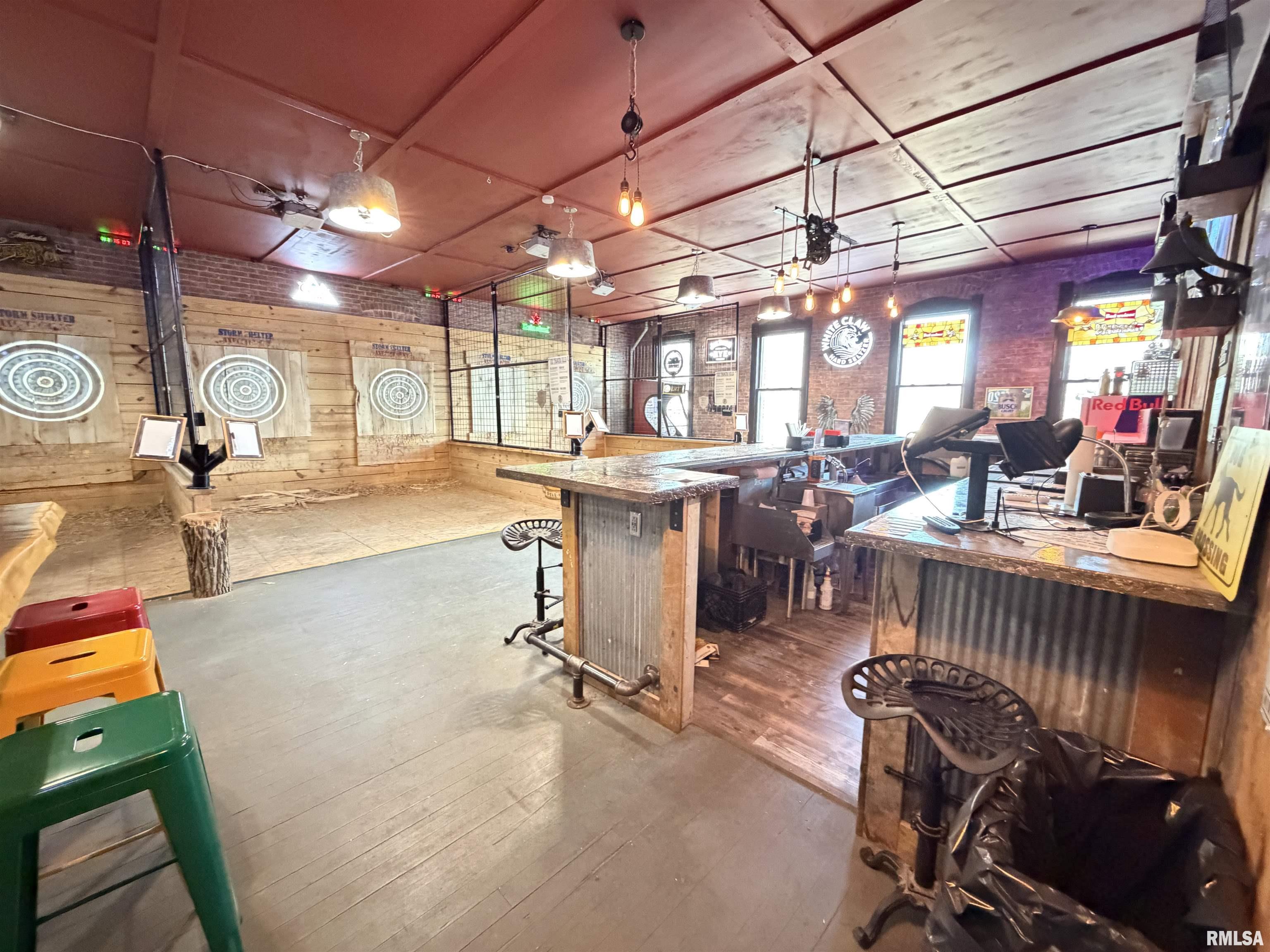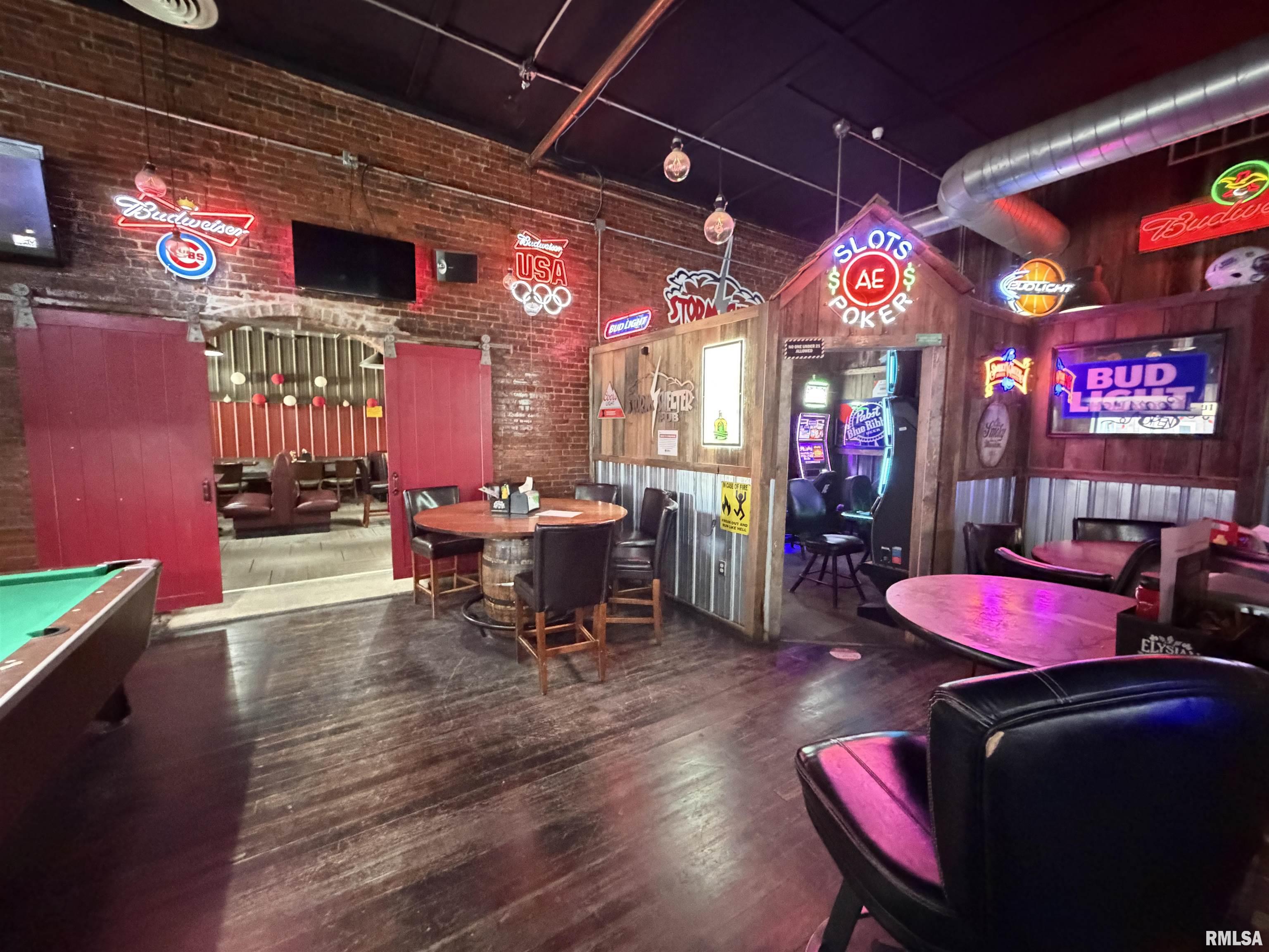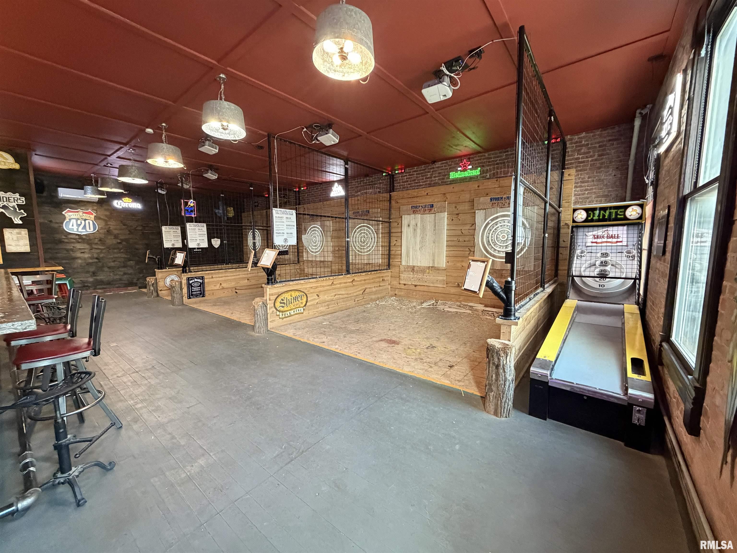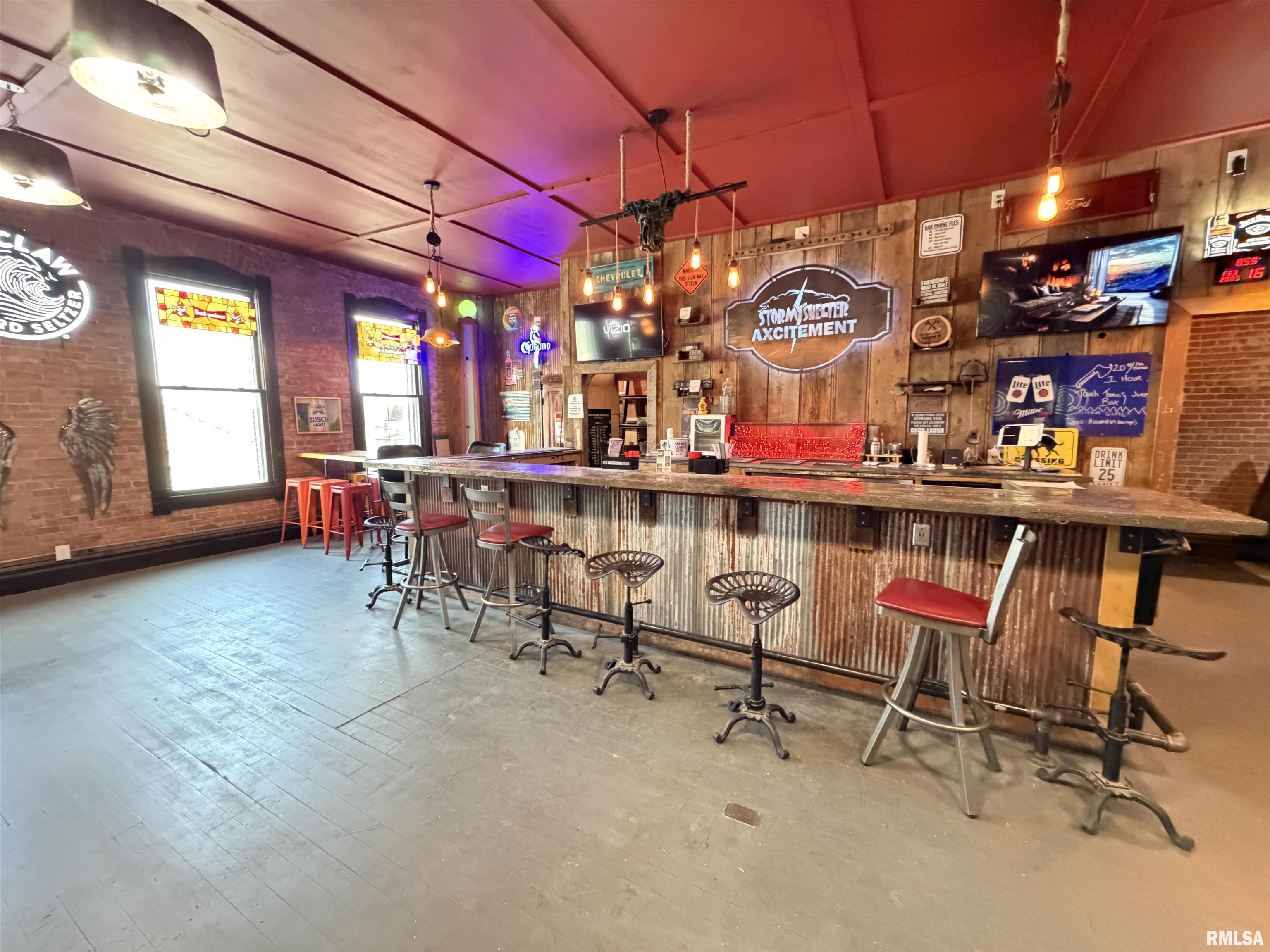 An incredible opportunity awaits in the heart of downtown Avon! This one of a kind, turn key commercial property offers multiple income streams and endless entertainment possibilities under one roof. The main venue features two fully operational bars with gaming, plus an additional side room ideal for private parties, overflow seating, or special events. Two kitchens provide flexibility for expanded menus, catering, or high-volume service, while a mezzanine office overlooks the action perfect for streamlined management. Entertainment options set this property apart, including axe throwing lanes, a golf simulator, and a private movie theater, creating a true destination experience that keeps customers coming back. The adjacent space expands the investment potential even further with a fully furnished 24-hour fitness facility with an established membership base. Above, you’ll find two apartments, offering additional rental income or on site living options. A detached two car garage adds convenience and extra storage. Strategically located downtown, this dynamic property is built for profitability and growth. Whether you’re an experienced operator or an investor seeking a diversified, income producing asset, this established, fully equipped business delivers immediate cash flow potential in a prime location.