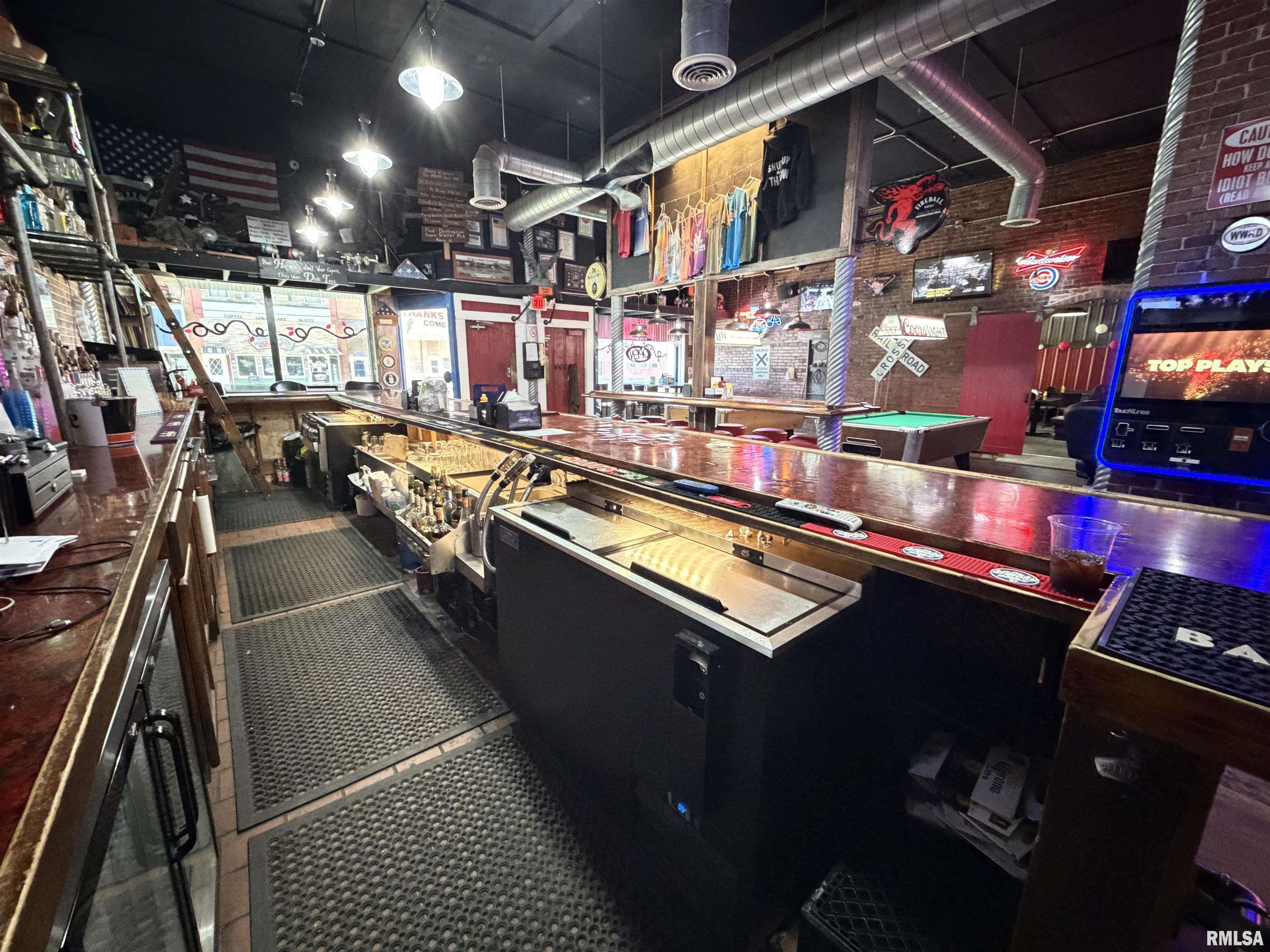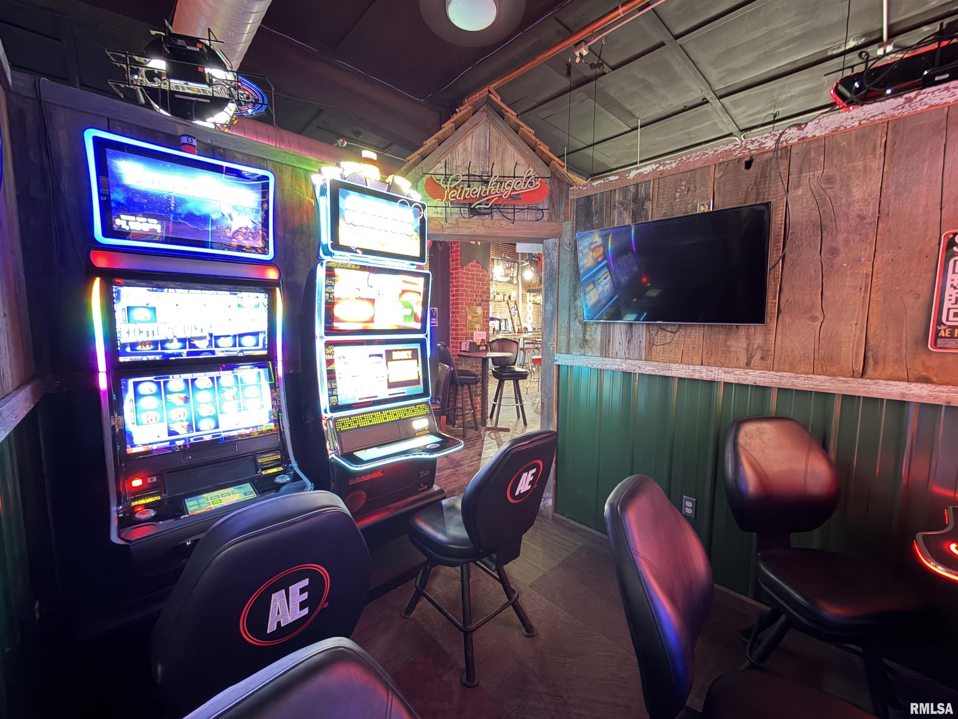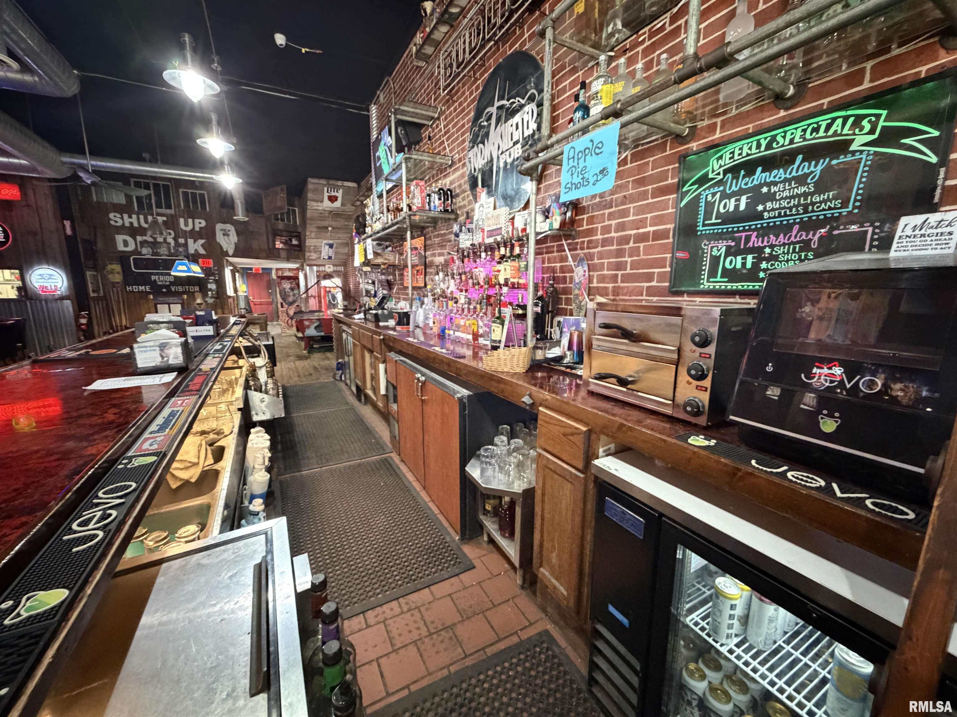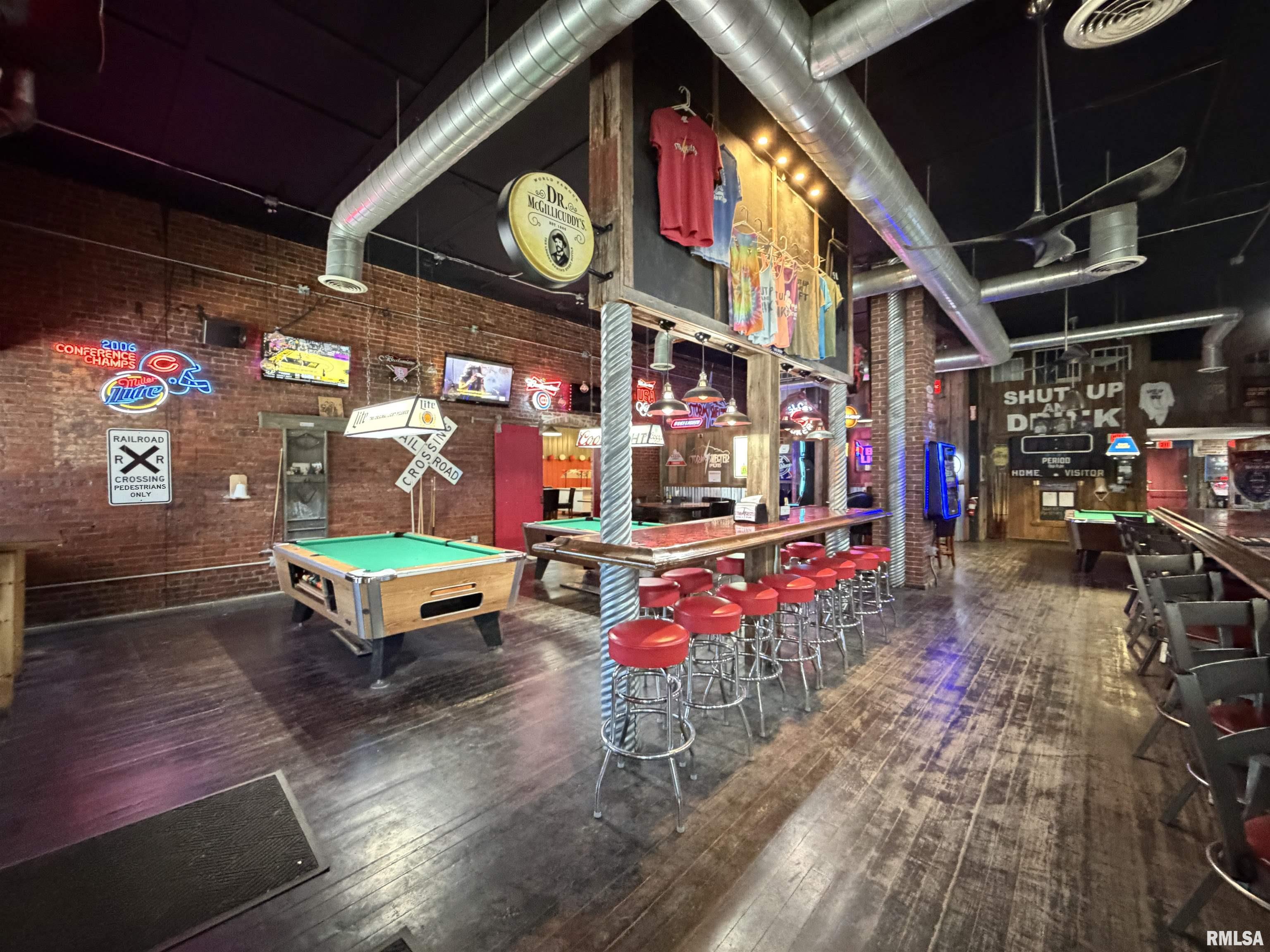 An incredible opportunity awaits in the heart of downtown Avon! This one of a kind, turn key commercial property offers multiple income streams and endless entertainment possibilities under one roof. The main venue features two fully operational bars with gaming, plus an additional side room ideal for private parties, overflow seating, or special events. Two kitchens provide flexibility for expanded menus, catering, or high-volume service, while a mezzanine office overlooks the action perfect for streamlined management. Entertainment options set this property apart, including axe throwing lanes, a golf simulator, and a private movie theater, creating a true destination experience that keeps customers coming back. The adjacent space expands the investment potential even further with a fully furnished 24-hour fitness facility with an established membership base. Above, you’ll find two apartments, offering additional rental income or on site living options. A detached two car garage adds convenience and extra storage. Strategically located downtown, this dynamic property is built for profitability and growth. Whether you’re an experienced operator or an investor seeking a diversified, income producing asset, this established, fully equipped business delivers immediate cash flow potential in a prime location.