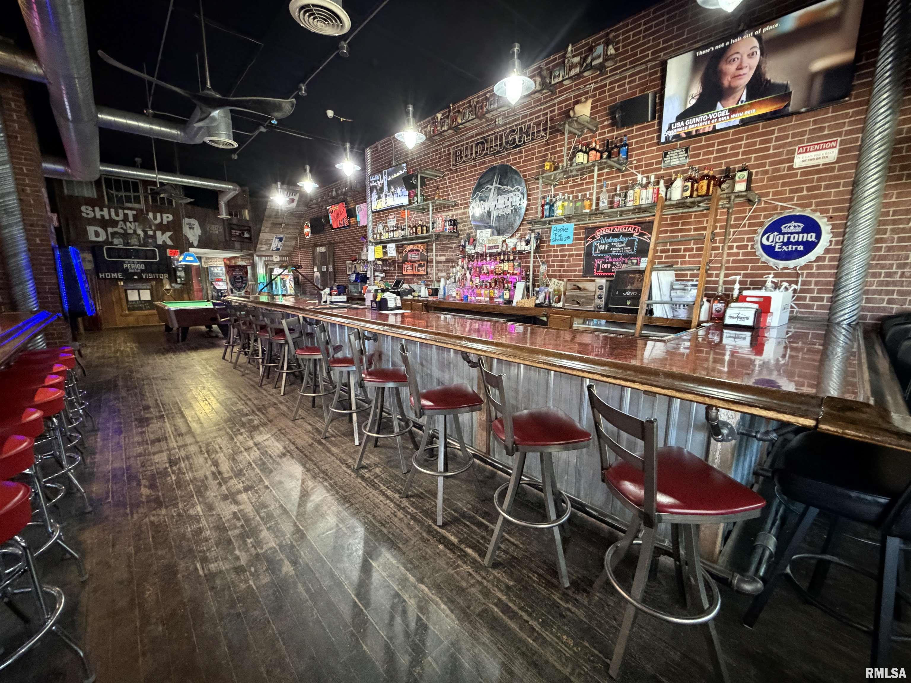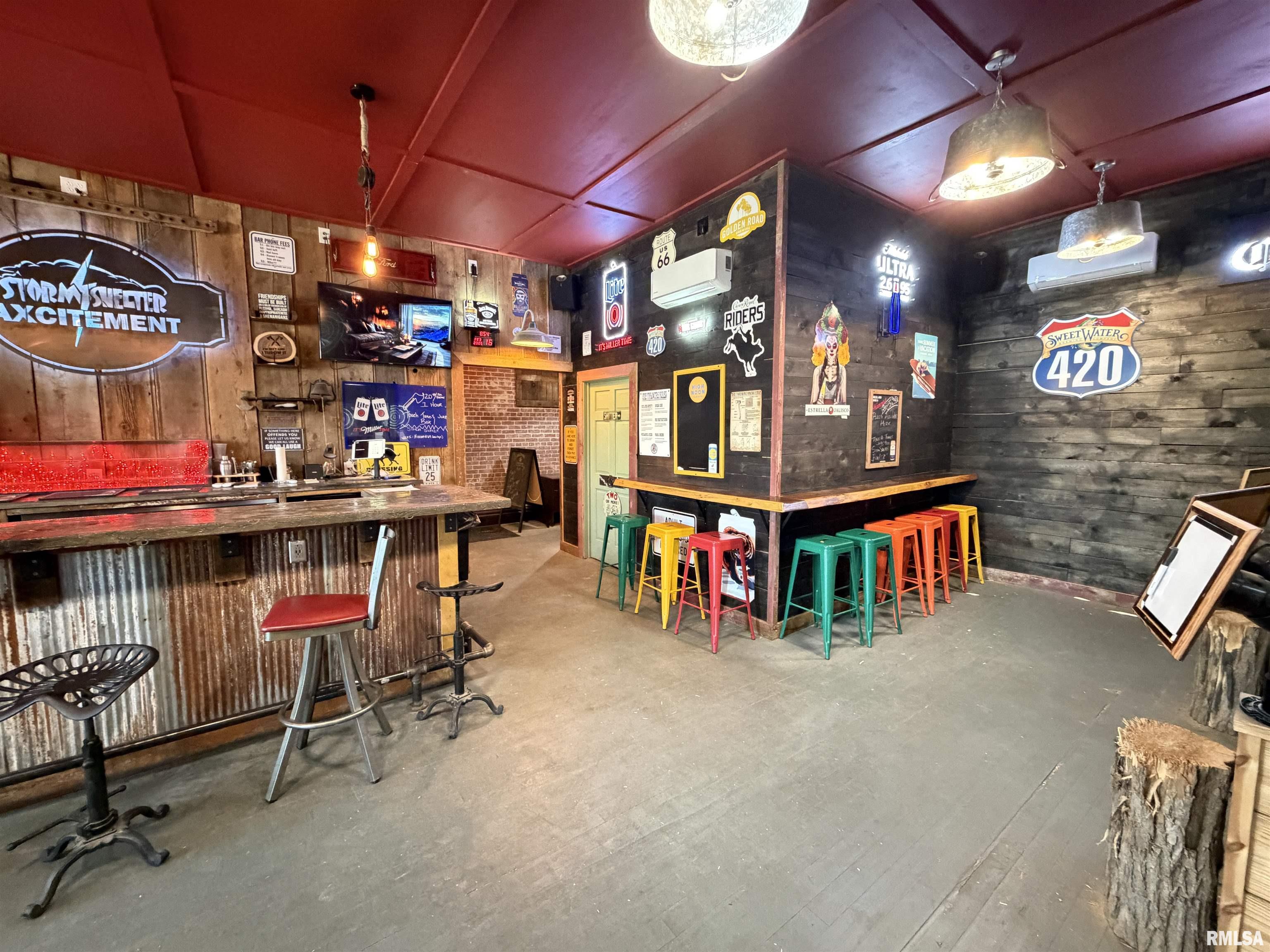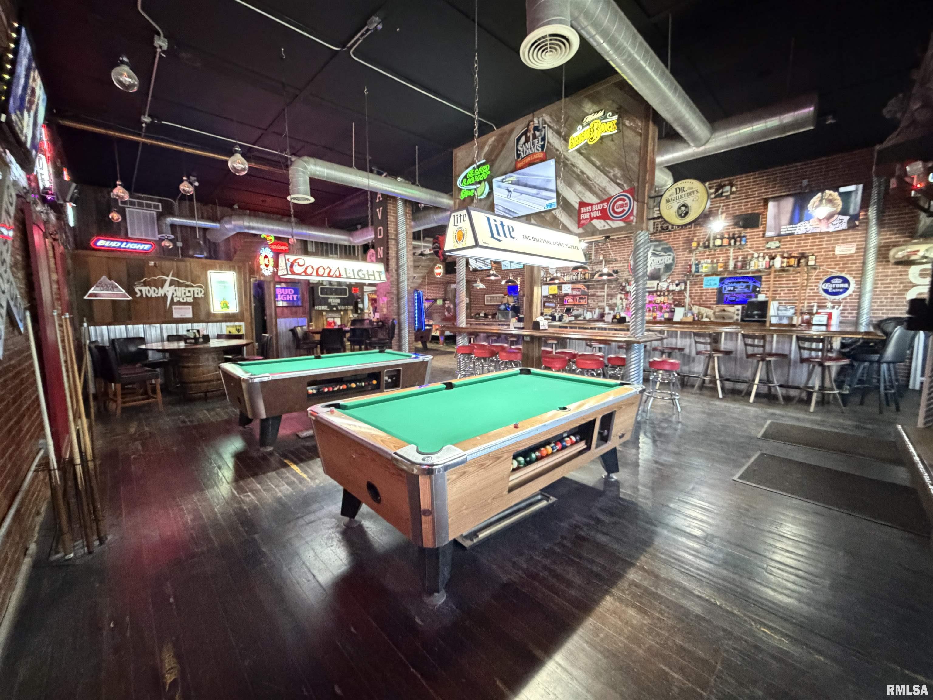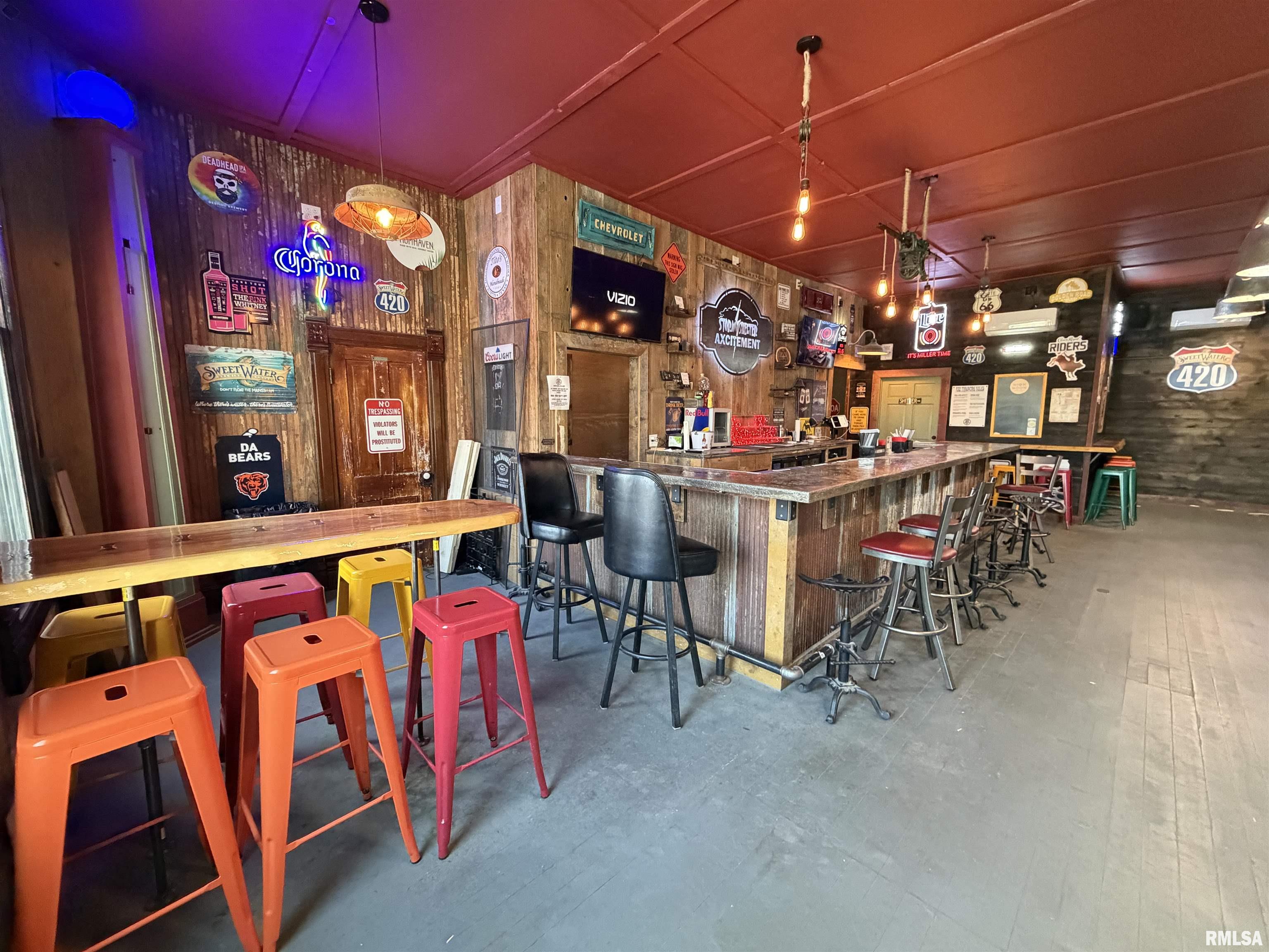 An incredible opportunity awaits in the heart of downtown Avon! This one of a kind, turn key commercial property offers multiple income streams and endless entertainment possibilities under one roof. The main venue features two fully operational bars with gaming, plus an additional side room ideal for private parties, overflow seating, or special events. Two kitchens provide flexibility for expanded menus, catering, or high-volume service, while a mezzanine office overlooks the action perfect for streamlined management. Entertainment options set this property apart, including axe throwing lanes, a golf simulator, and a private movie theater, creating a true destination experience that keeps customers coming back. The adjacent space expands the investment potential even further with a fully furnished 24-hour fitness facility with an established membership base. Above, you’ll find two apartments, offering additional rental income or on site living options. A detached two car garage adds convenience and extra storage. Strategically located downtown, this dynamic property is built for profitability and growth. Whether you’re an experienced operator or an investor seeking a diversified, income producing asset, this established, fully equipped business delivers immediate cash flow potential in a prime location.
