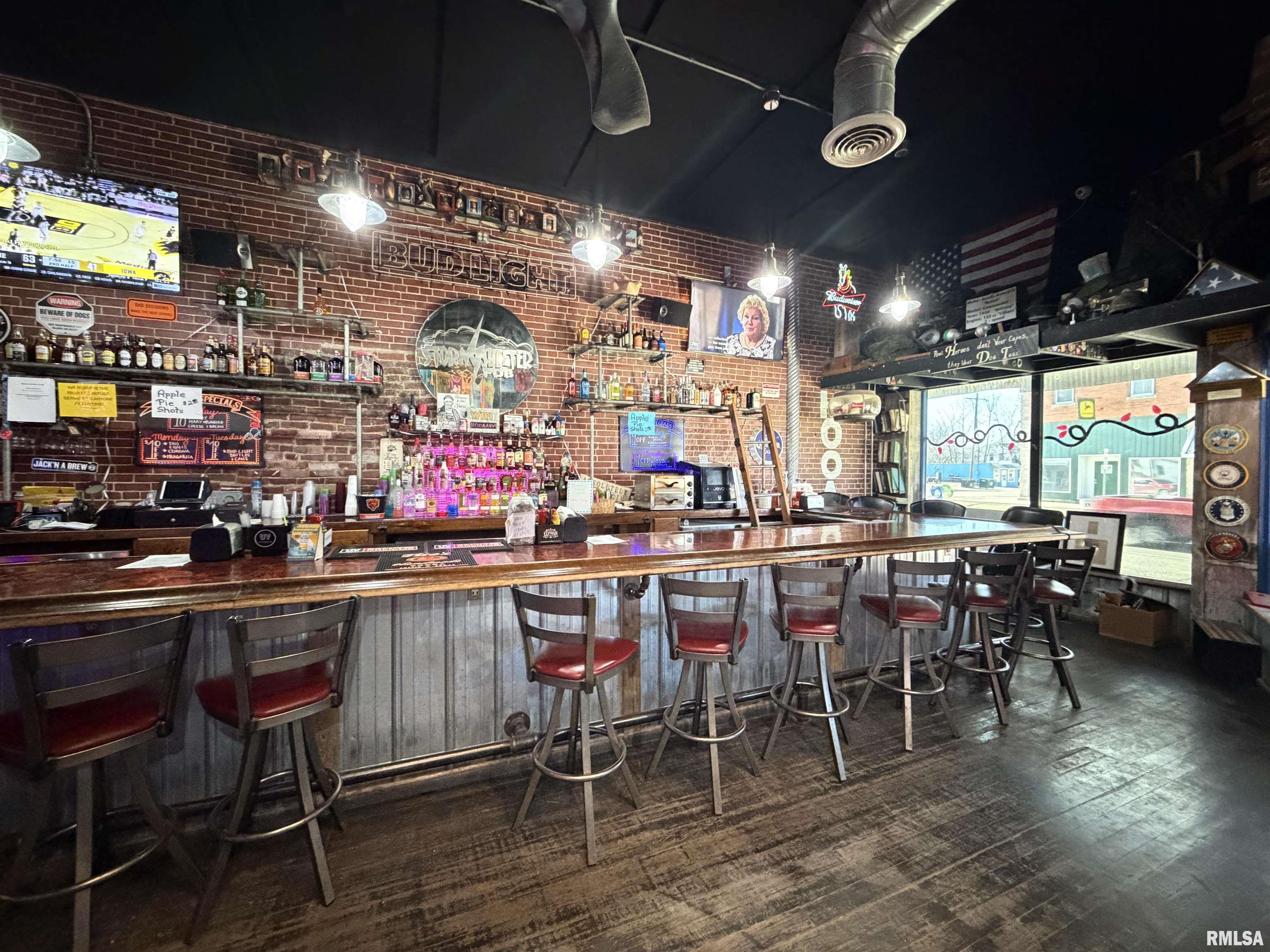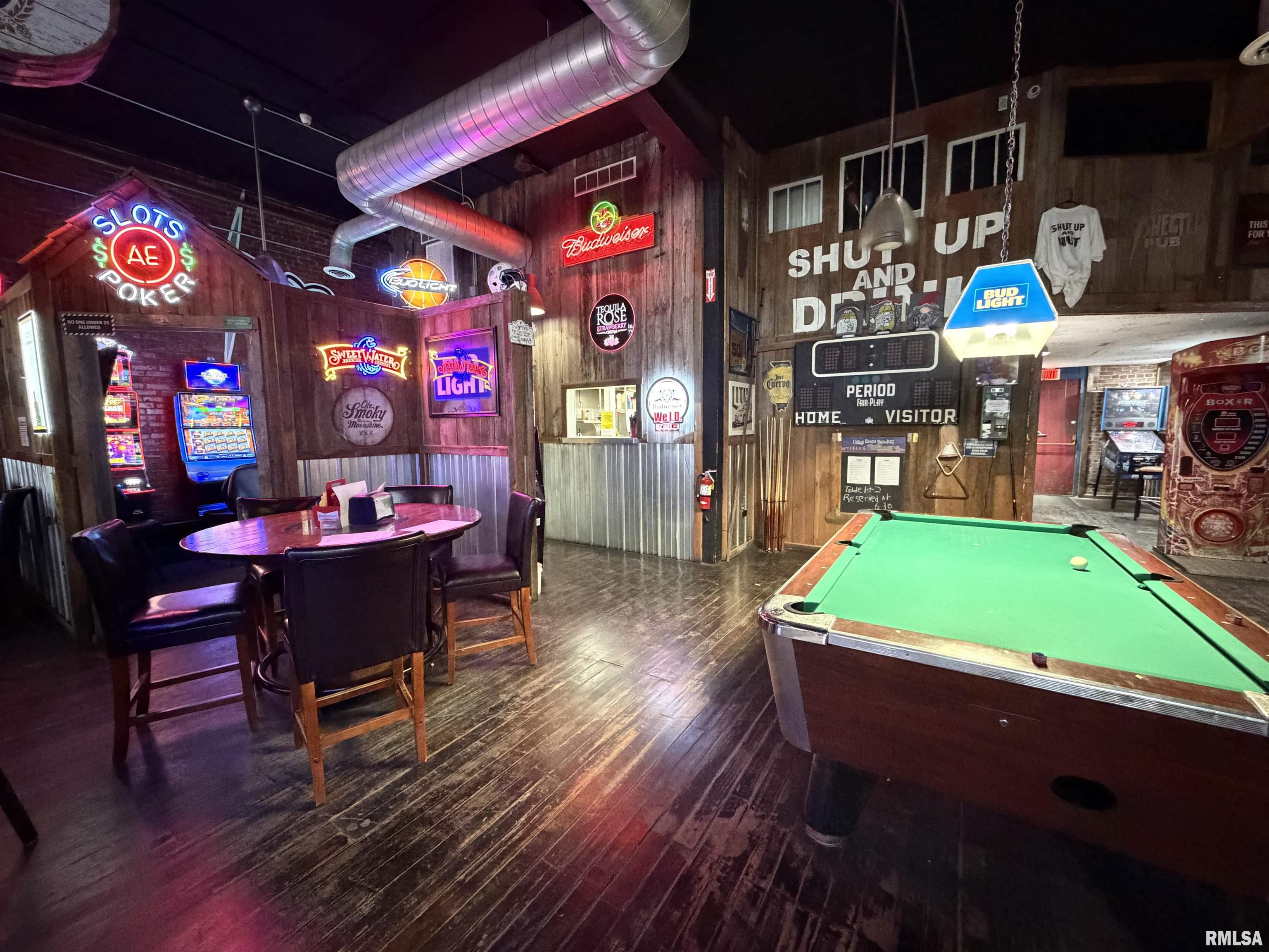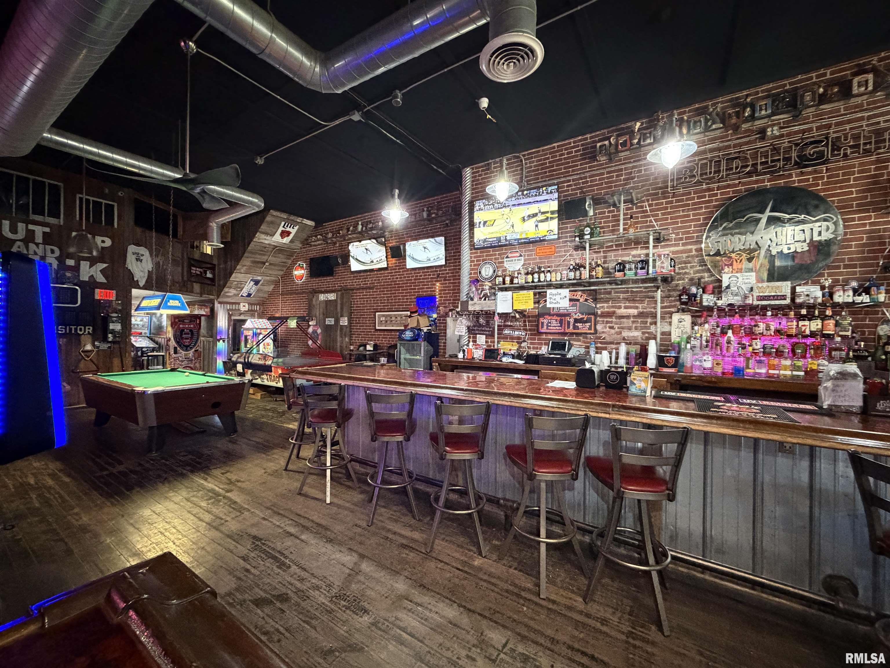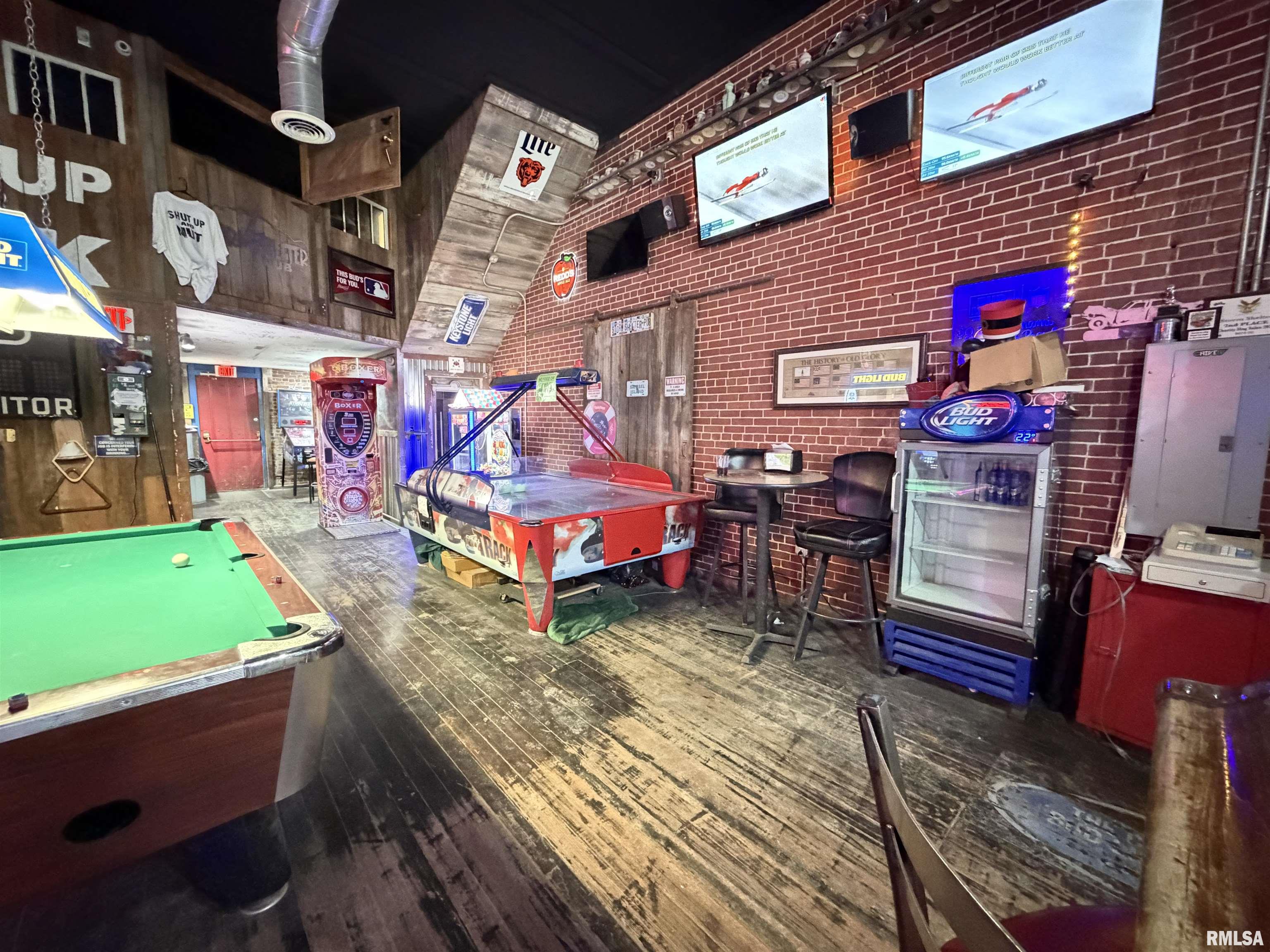 An incredible opportunity awaits in the heart of downtown Avon! This one of a kind, turn key commercial property offers multiple income streams and endless entertainment possibilities under one roof. The main venue features two fully operational bars with gaming, plus an additional side room ideal for private parties, overflow seating, or special events. Two kitchens provide flexibility for expanded menus, catering, or high-volume service, while a mezzanine office overlooks the action perfect for streamlined management. Entertainment options set this property apart, including axe throwing lanes, a golf simulator, and a private movie theater, creating a true destination experience that keeps customers coming back. The adjacent space expands the investment potential even further with a fully furnished 24-hour fitness facility with an established membership base. Above, you’ll find two apartments, offering additional rental income or on site living options. A detached two car garage adds convenience and extra storage. Strategically located downtown, this dynamic property is built for profitability and growth. Whether you’re an experienced operator or an investor seeking a diversified, income producing asset, this established, fully equipped business delivers immediate cash flow potential in a prime location.