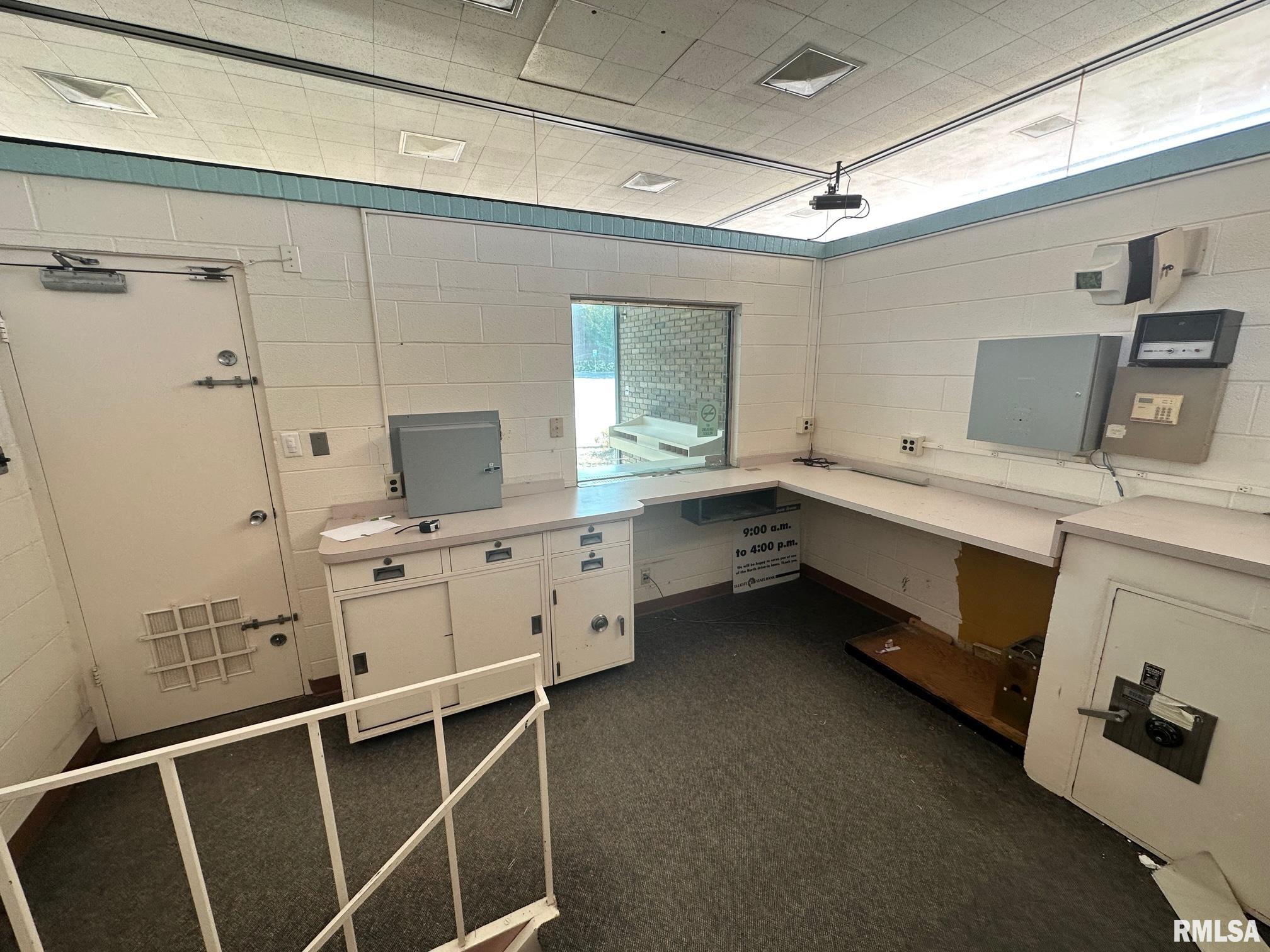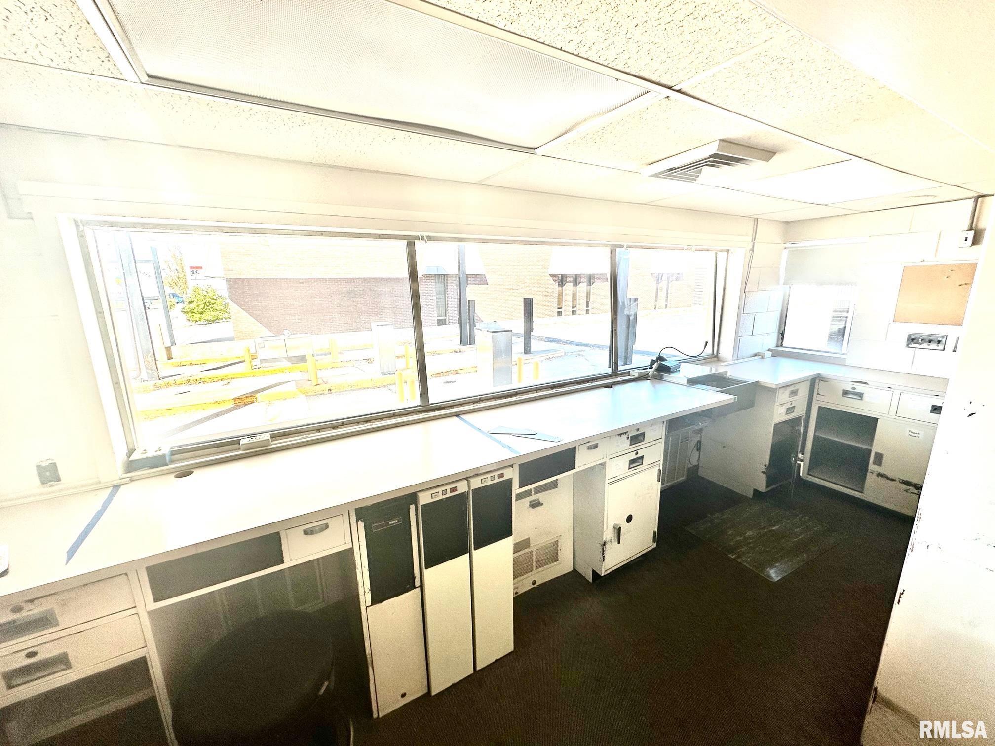 Drive Through Business opportunity. Former Drive through Bank location. Two separate work space areas connected by a common basement walk through. Basement is very usable as office space or storage. Plenty of great parking. High Traffic location just off the downtown Square. 3 drive though lanes covered by a canopy.