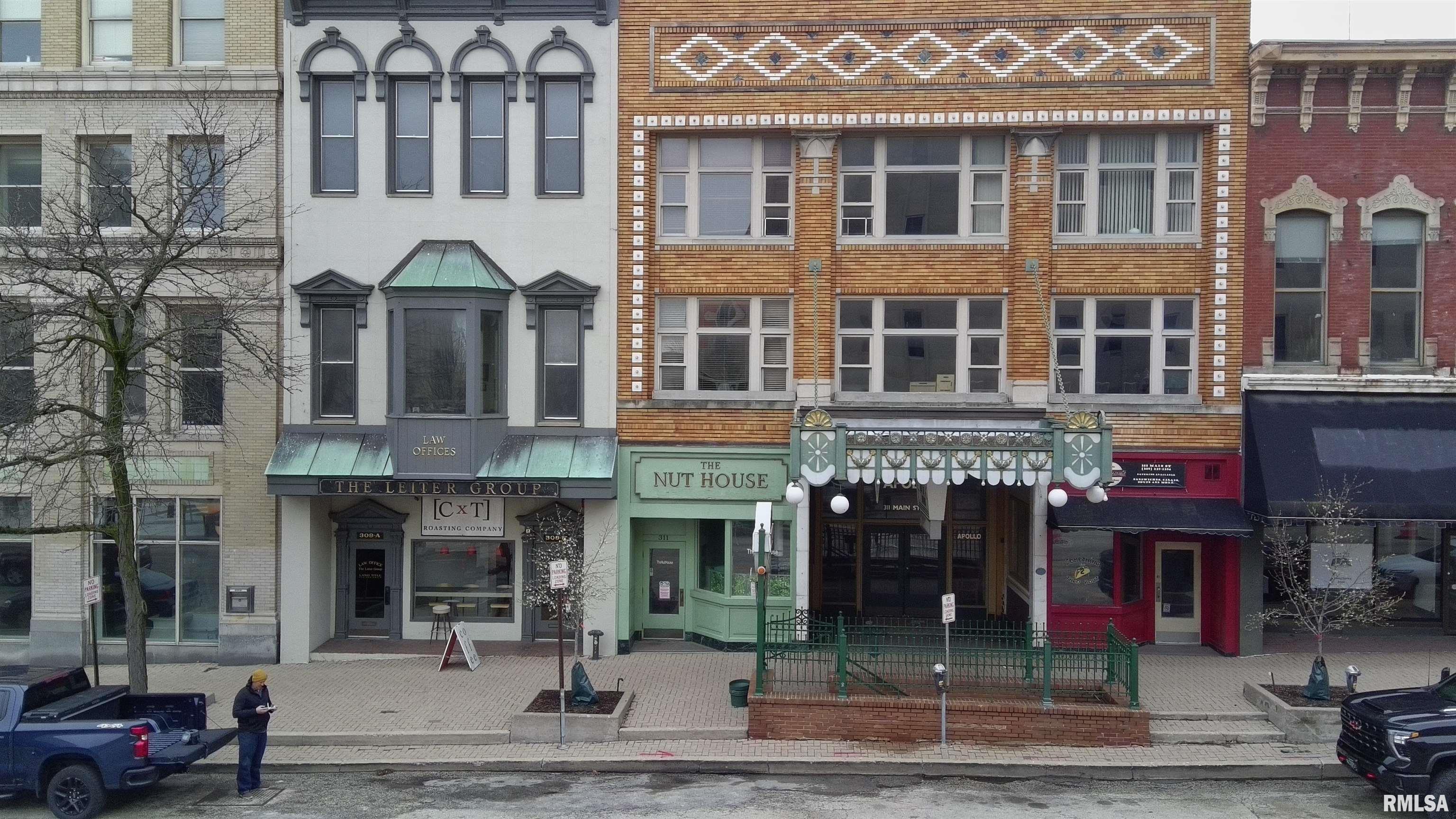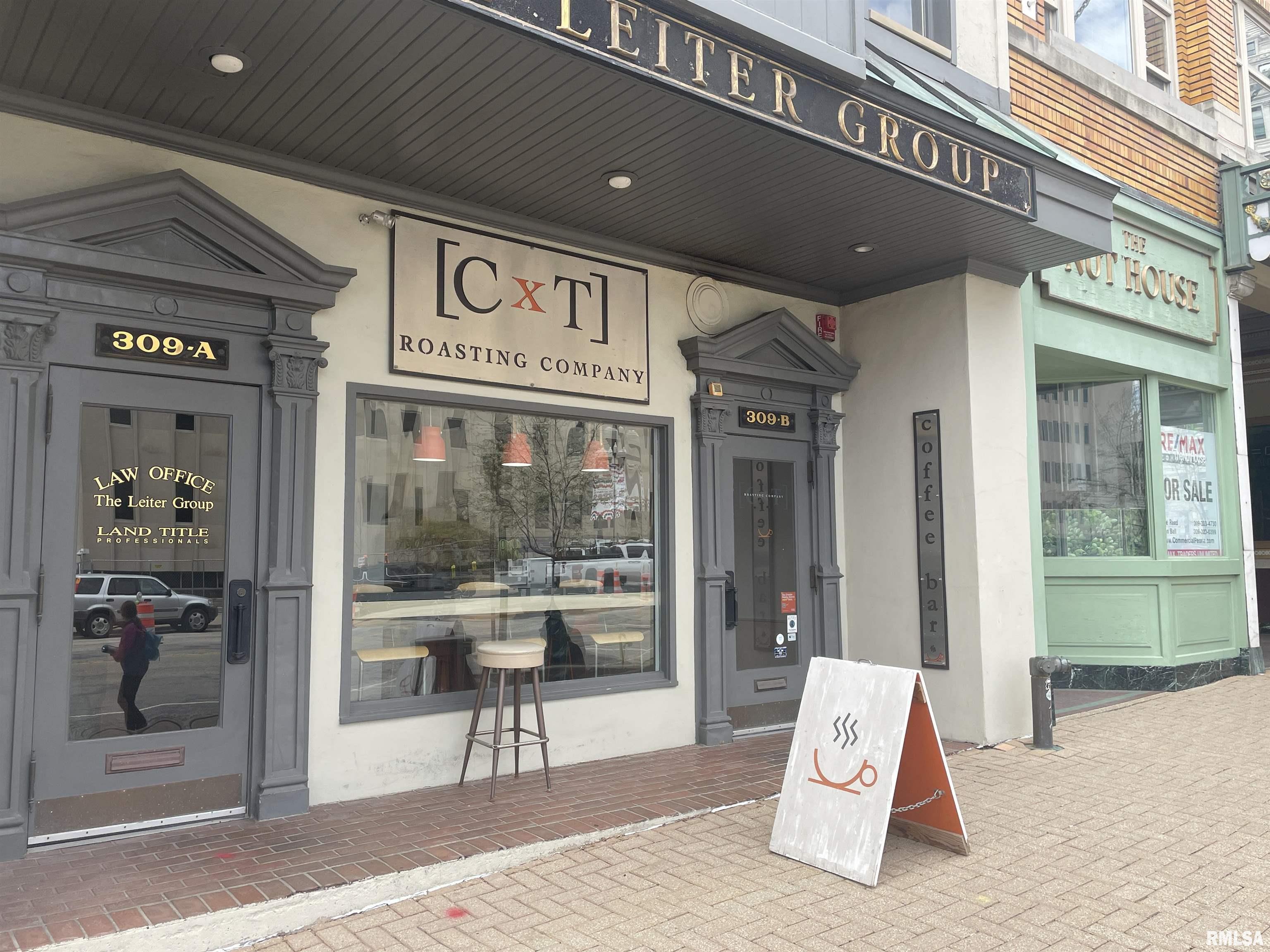 The 4,953 SF, three-story investment property at 309 Main Street in downtown Peoria, Illinois, features both retail and office spaces with active leases. The main level retail space is leased by CxT Coffee and the second and third floors are currently occupied by The Leiter Group (law firm). The law firm’s second-floor office space includes two private offices, a reception area, and a work room; the third floor includes an open atrium, a large work room, three private offices, a kitchen, and a file room. The law firm floors can be vacated for owner occupancy or can continue to be leased. The building is fully sprinklered and is sold as-is, where is with no guarantees. This property is also for sale with the adjacent property, 311 Main Street, which offers a renovation opportunity for the vacant historic theater, retail spaces and a lower-level (below street level) bar (formerly Richards Underground).