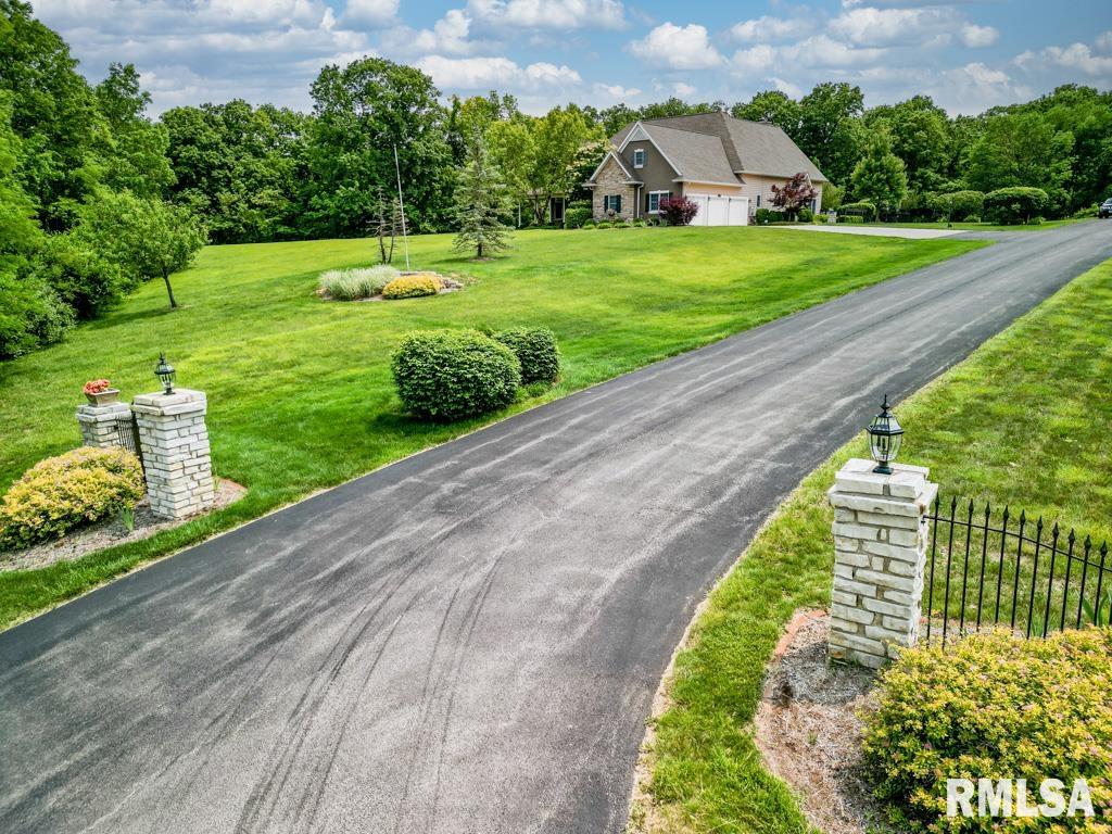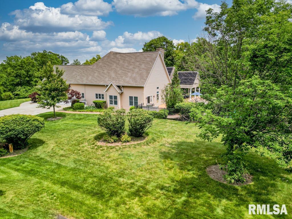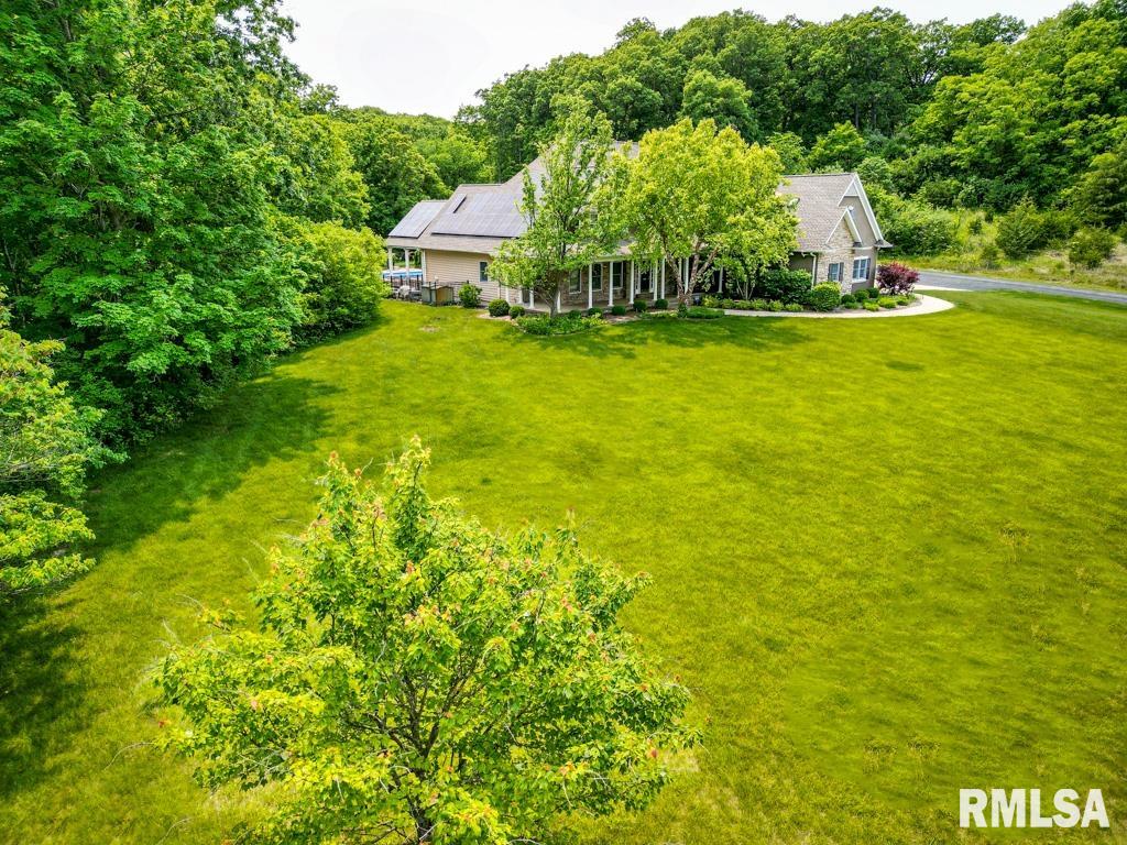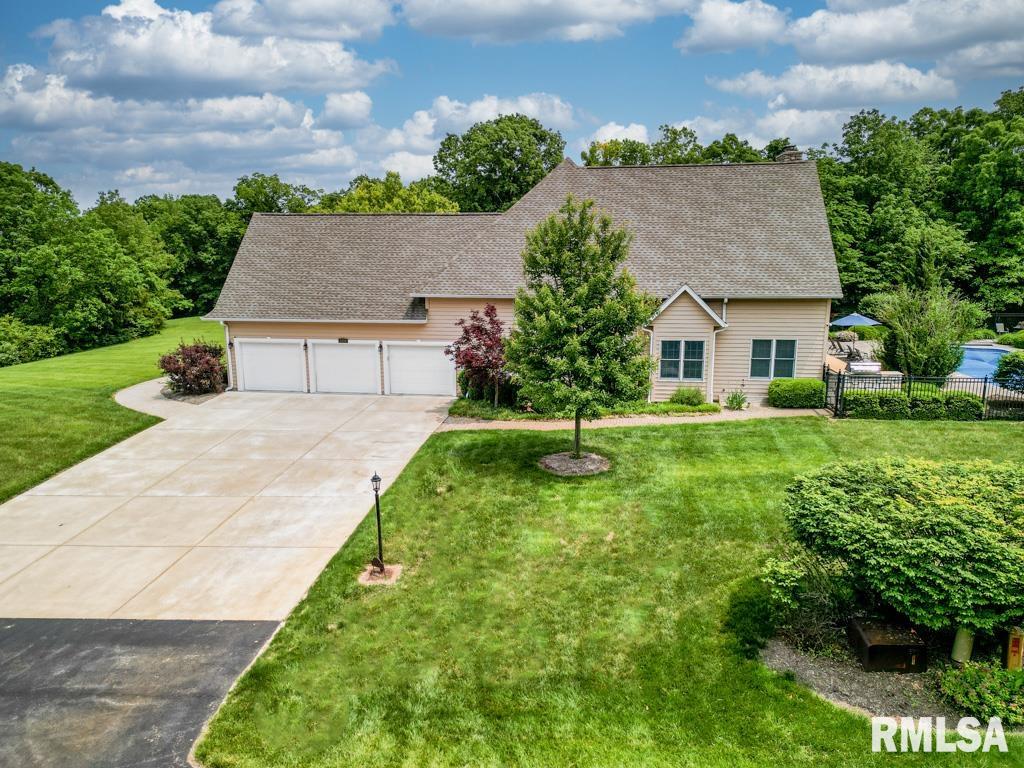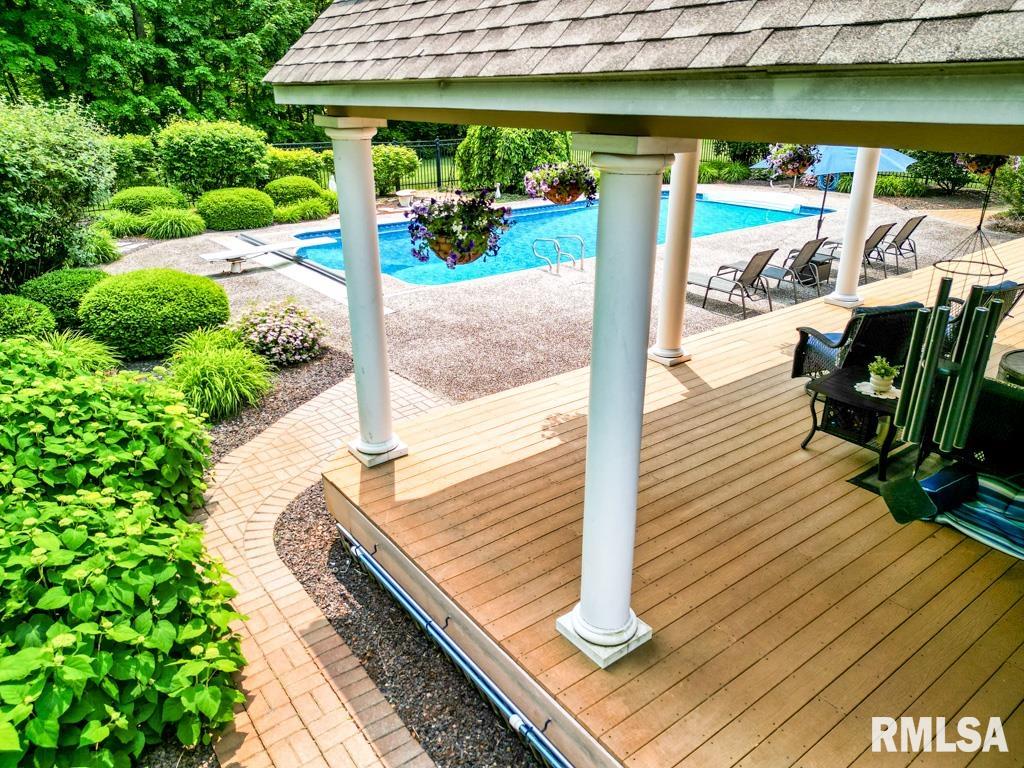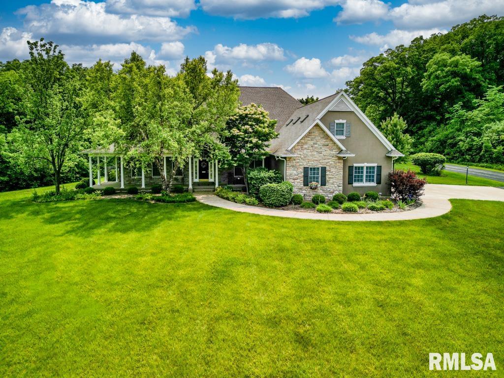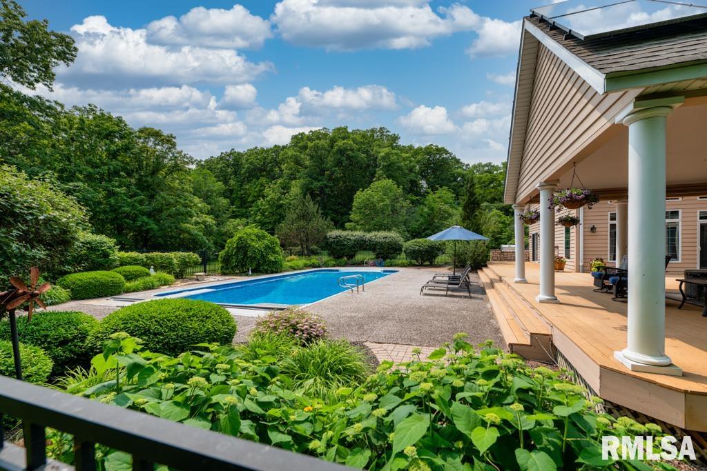 Exceptional private retreat in Dunlap School District! Nestled on over 5 acres, this 5 BR, 5.5 bath home offers a rare blend of luxury & privacy. Long-term savings with fully paid-off, top-of-the-line solar panels, providing impressive energy efficiency. Enjoy the resort-style in-ground pool, expansive composite deck, covered seating, built-in grill, & a convenient poolside full bath—perfect for relaxing all summer long. Inside, you’ll find vaulted ceilings, plantation shutters, and abundant natural light. The gourmet kitchen boasts a large island, high-end appliances, ceramic tile floors, and walk-in pantry. The inviting family room showcases a floor-to-ceiling stone fireplace, cathedral ceilings, custom woodwork, and wet bar, while a second great room with fireplace offers stunning backyard views through French doors and oversized windows. The main-floor primary is a true retreat with private outdoor access. A 2nd main-level suite offers flexibility and the upstairs features private in-law quarters. The overall layout—with additional bedrooms and private living spaces on the upper and lower levels—is ideal for those seeking separation and privacy, including households with older children, guests, or multi-generational living needs. Finished basement has two BR’s, theater area, full bath, full kitchen, and workout area. A rare opportunity in Dunlap!