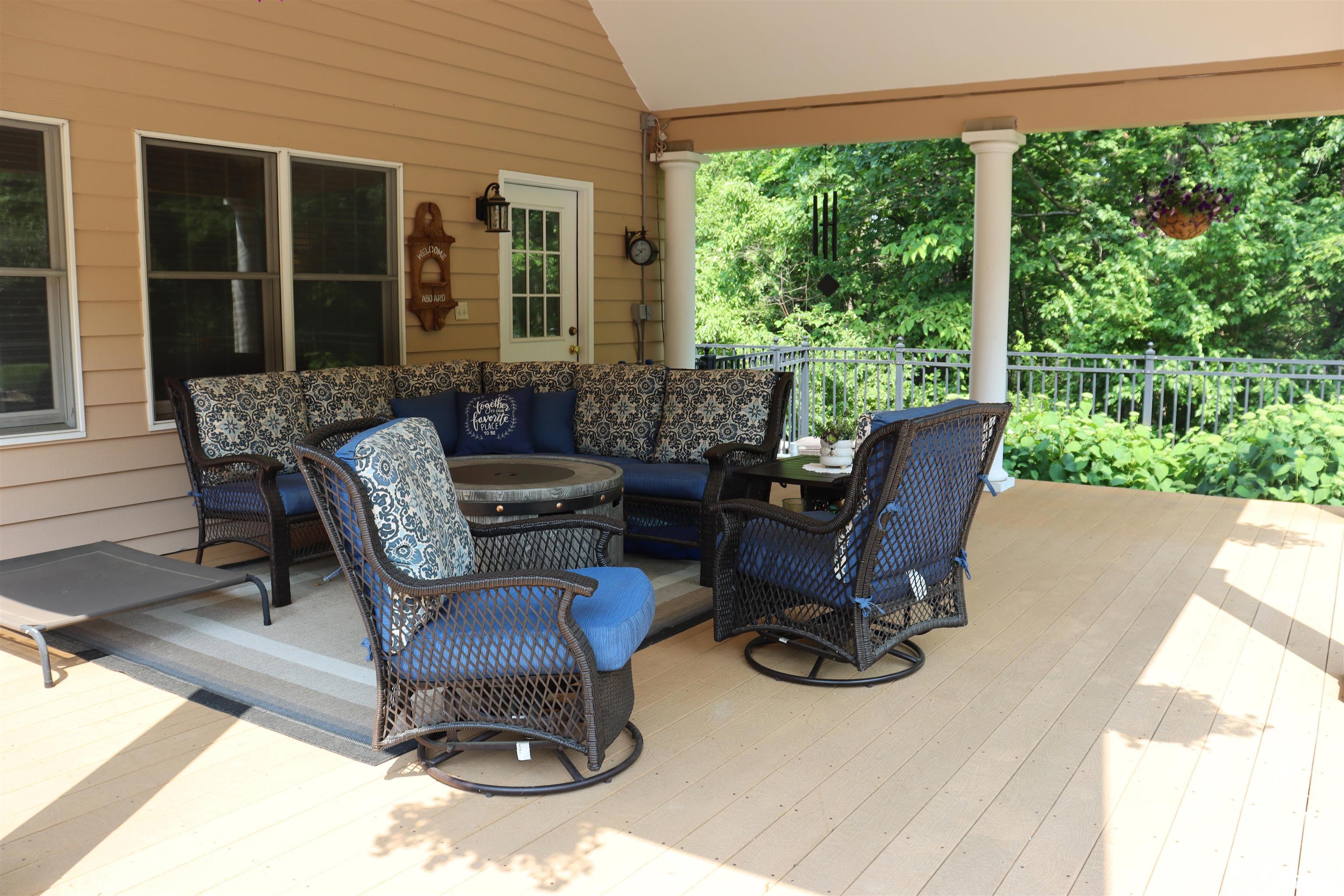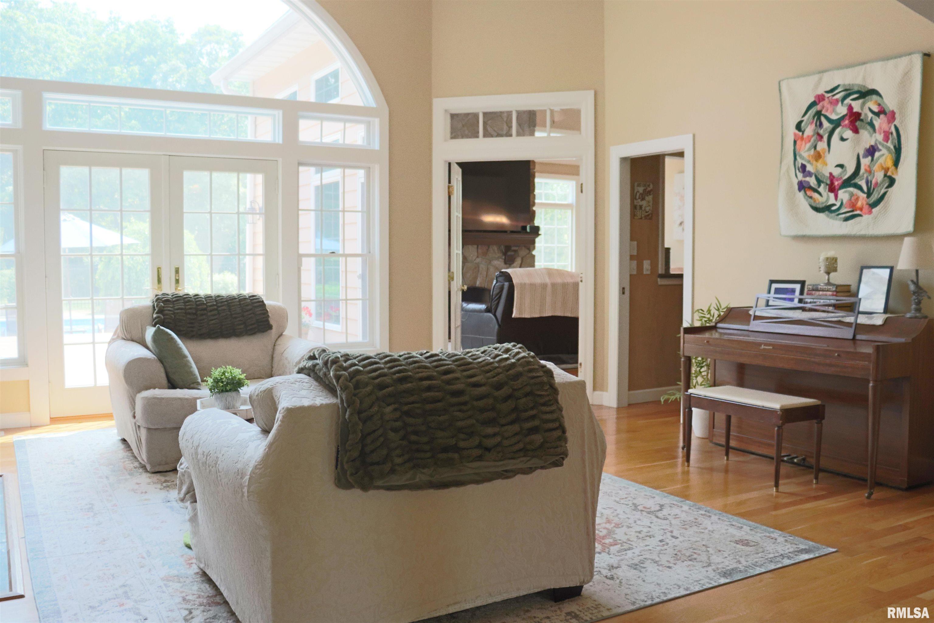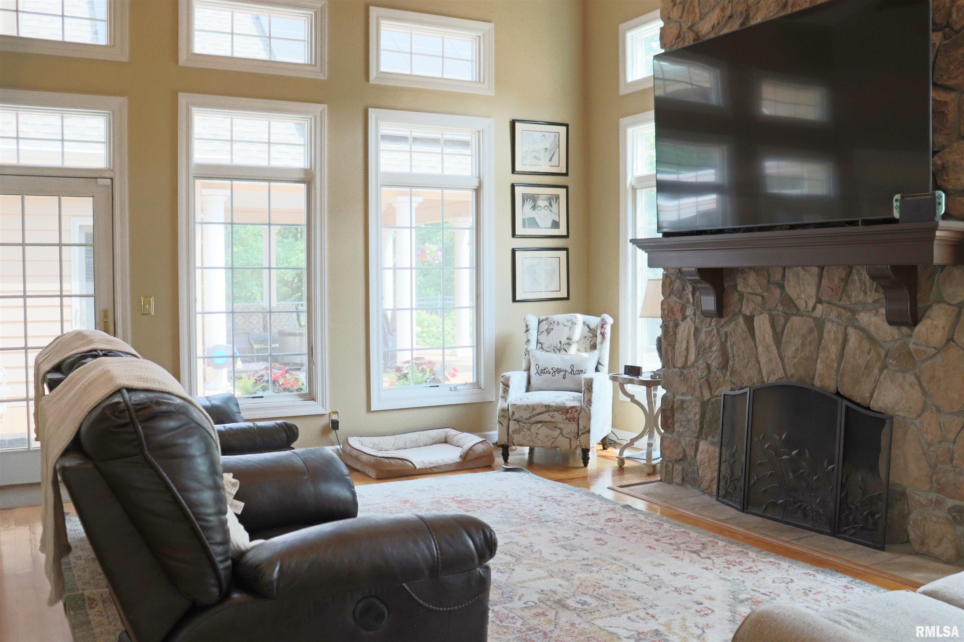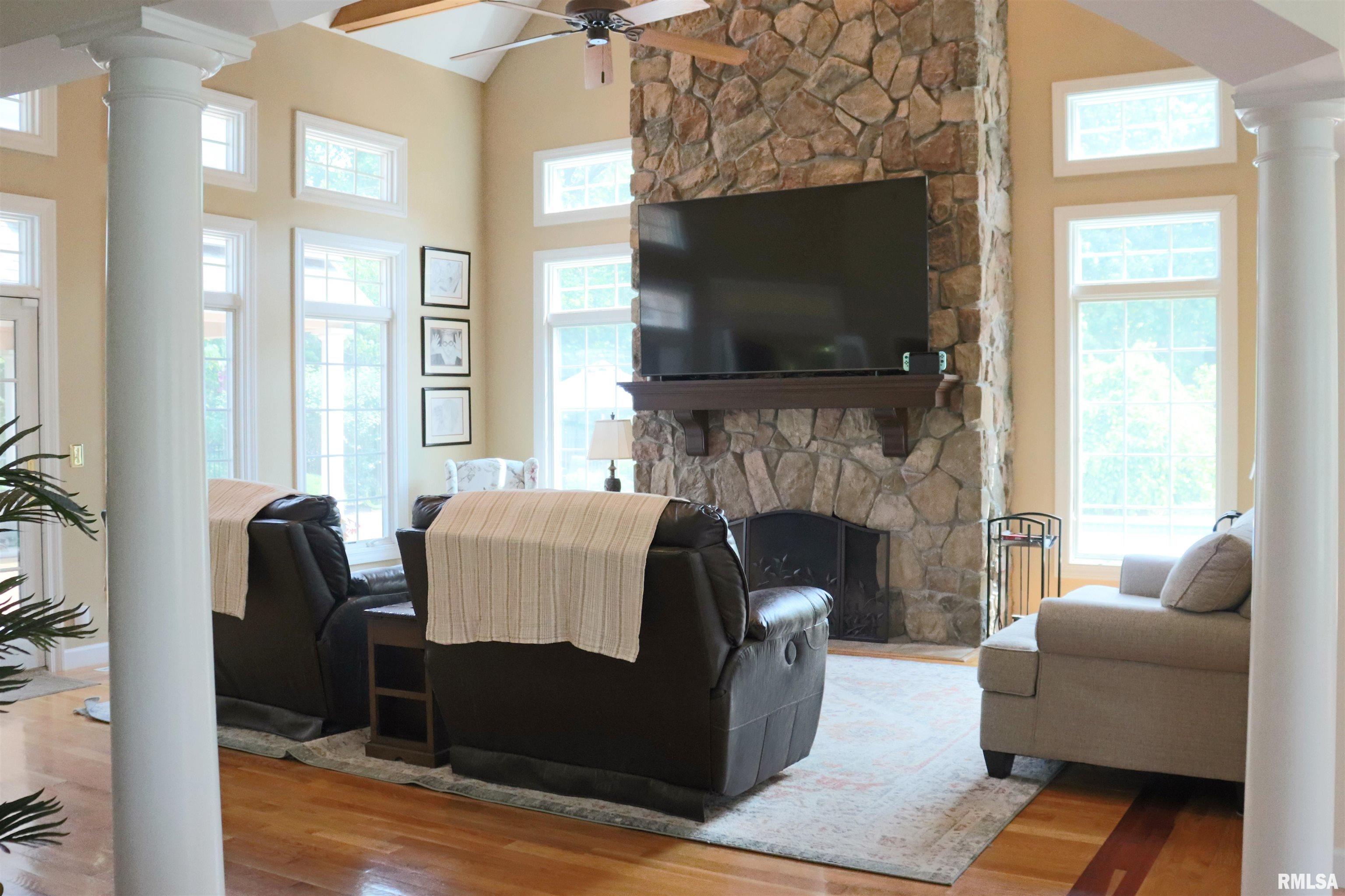 Exceptional private retreat in Dunlap School District! Nestled on over 5 acres, this 5 BR, 5.5 bath home offers a rare blend of luxury & privacy. Long-term savings with fully paid-off, top-of-the-line solar panels, providing impressive energy efficiency. Enjoy the resort-style in-ground pool, expansive composite deck, covered seating, built-in grill, & a convenient poolside full bath—perfect for relaxing all summer long. Inside, you’ll find vaulted ceilings, plantation shutters, and abundant natural light. The gourmet kitchen boasts a large island, high-end appliances, ceramic tile floors, and walk-in pantry. The inviting family room showcases a floor-to-ceiling stone fireplace, cathedral ceilings, custom woodwork, and wet bar, while a second great room with fireplace offers stunning backyard views through French doors and oversized windows. The main-floor primary is a true retreat with private outdoor access. A 2nd main-level suite offers flexibility and the upstairs features private in-law quarters. The overall layout—with additional bedrooms and private living spaces on the upper and lower levels—is ideal for those seeking separation and privacy, including households with older children, guests, or multi-generational living needs. Finished basement has two BR’s, theater area, full bath, full kitchen, and workout area. A rare opportunity in Dunlap!