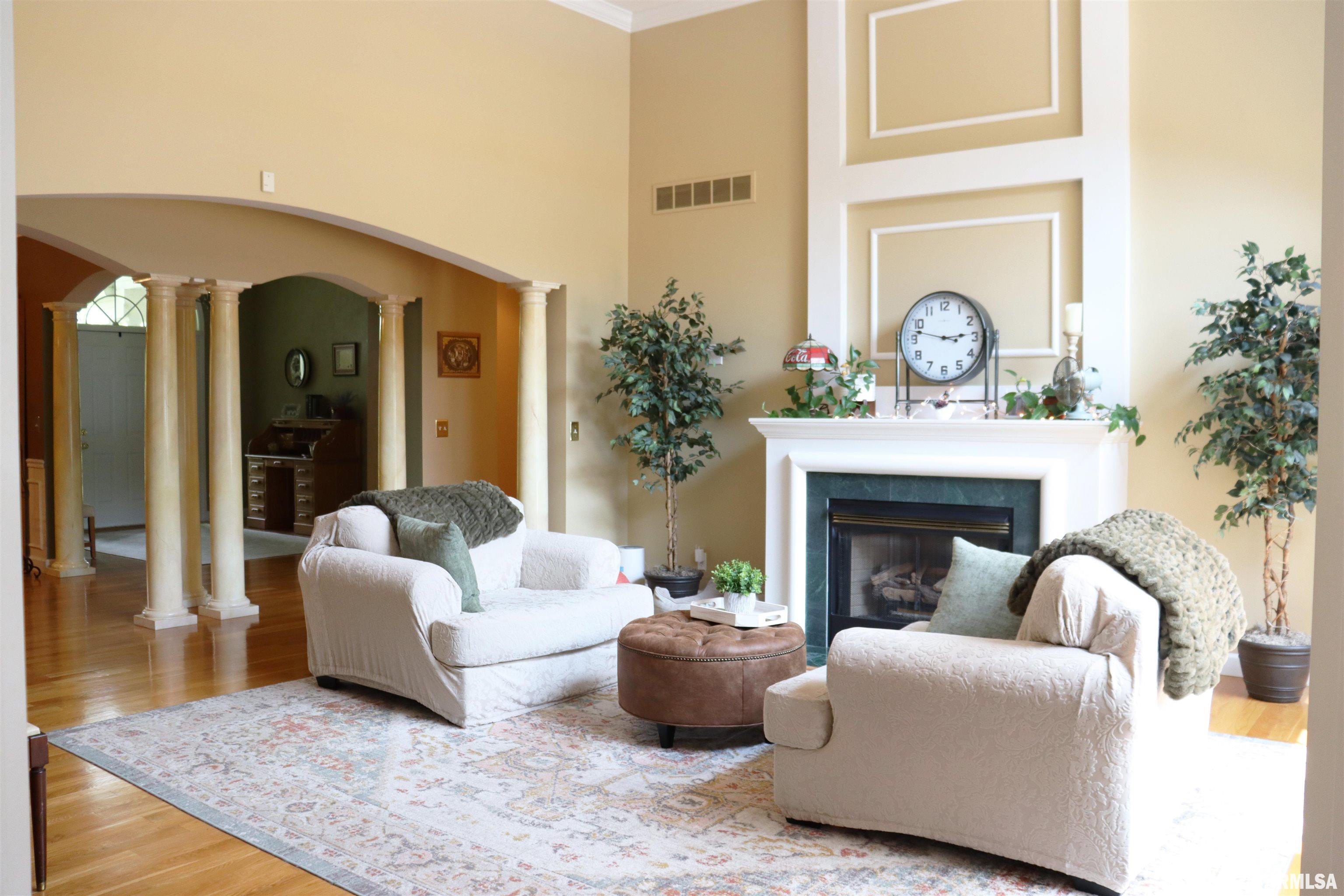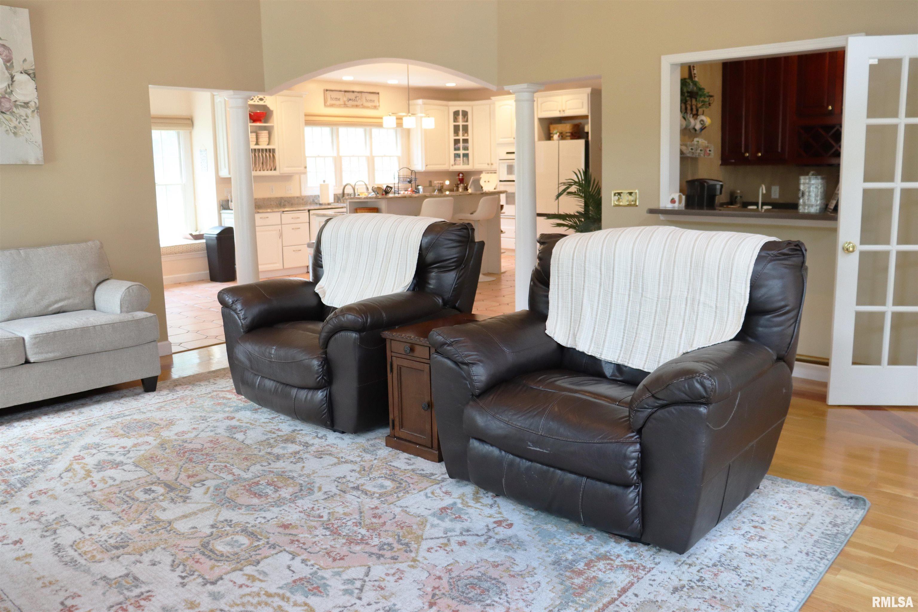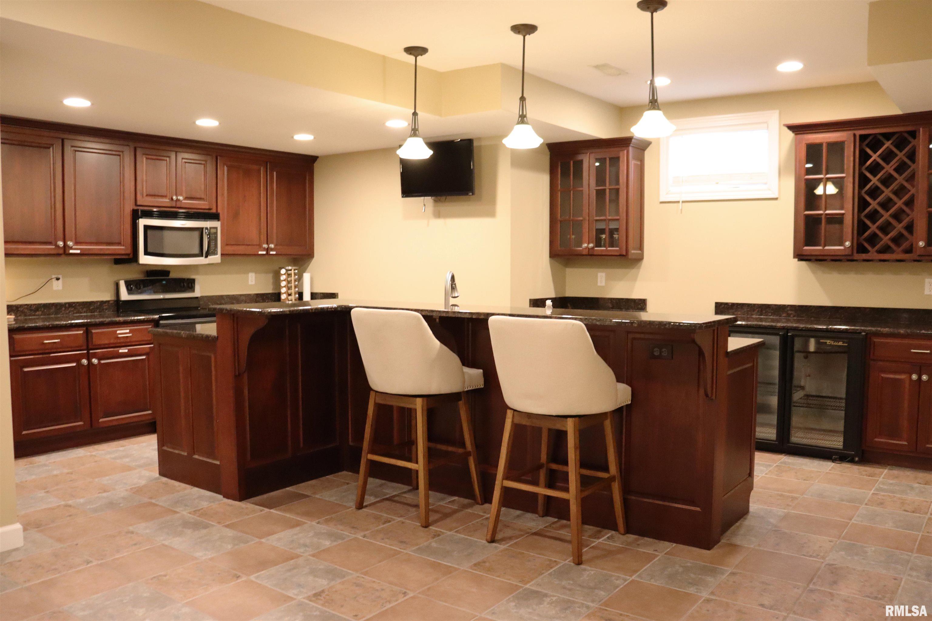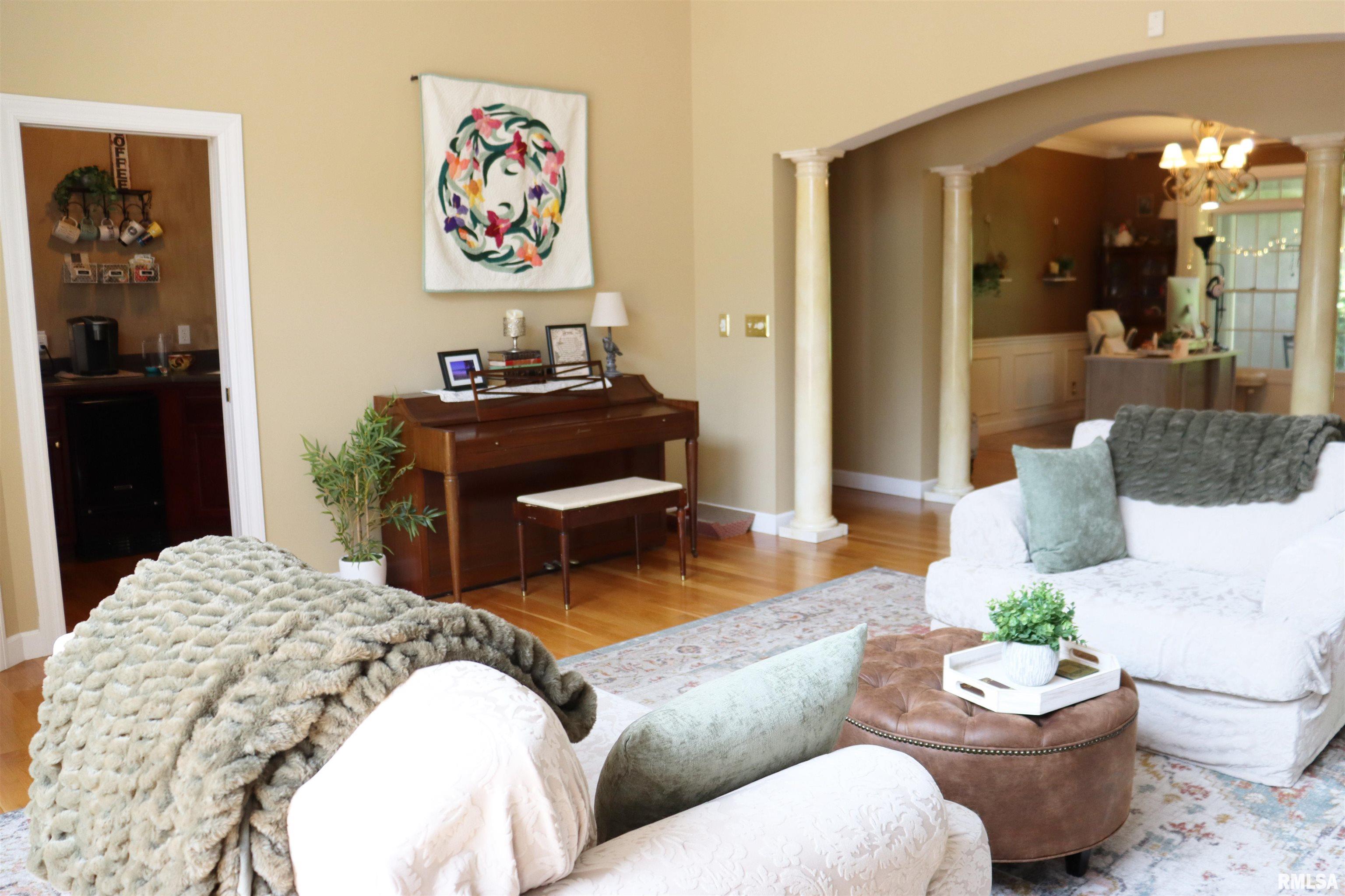 Exceptional private retreat in Dunlap School District! Nestled on over 5 acres, this 5 BR, 5.5 bath home offers a rare blend of luxury & privacy. Long-term savings with fully paid-off, top-of-the-line solar panels, providing impressive energy efficiency. Enjoy the resort-style in-ground pool, expansive composite deck, covered seating, built-in grill, & a convenient poolside full bath—perfect for relaxing all summer long. Inside, you’ll find vaulted ceilings, plantation shutters, and abundant natural light. The gourmet kitchen boasts a large island, high-end appliances, ceramic tile floors, and walk-in pantry. The inviting family room showcases a floor-to-ceiling stone fireplace, cathedral ceilings, custom woodwork, and wet bar, while a second great room with fireplace offers stunning backyard views through French doors and oversized windows. The main-floor primary is a true retreat with private outdoor access. A 2nd main-level suite offers flexibility and the upstairs features private in-law quarters. The overall layout—with additional bedrooms and private living spaces on the upper and lower levels—is ideal for those seeking separation and privacy, including households with older children, guests, or multi-generational living needs. Finished basement has two BR’s, theater area, full bath, full kitchen, and workout area. A rare opportunity in Dunlap!