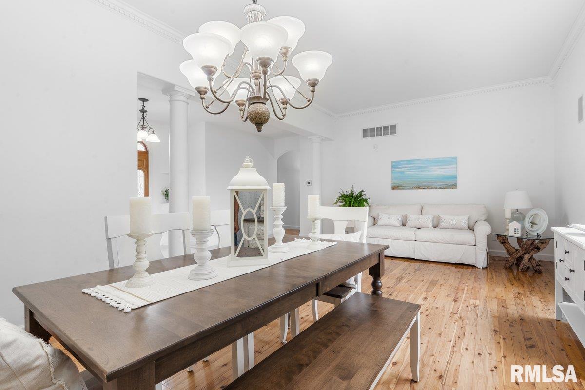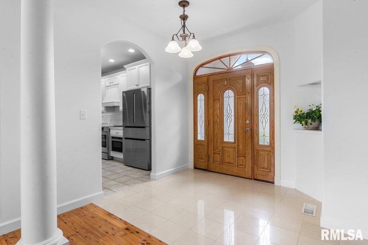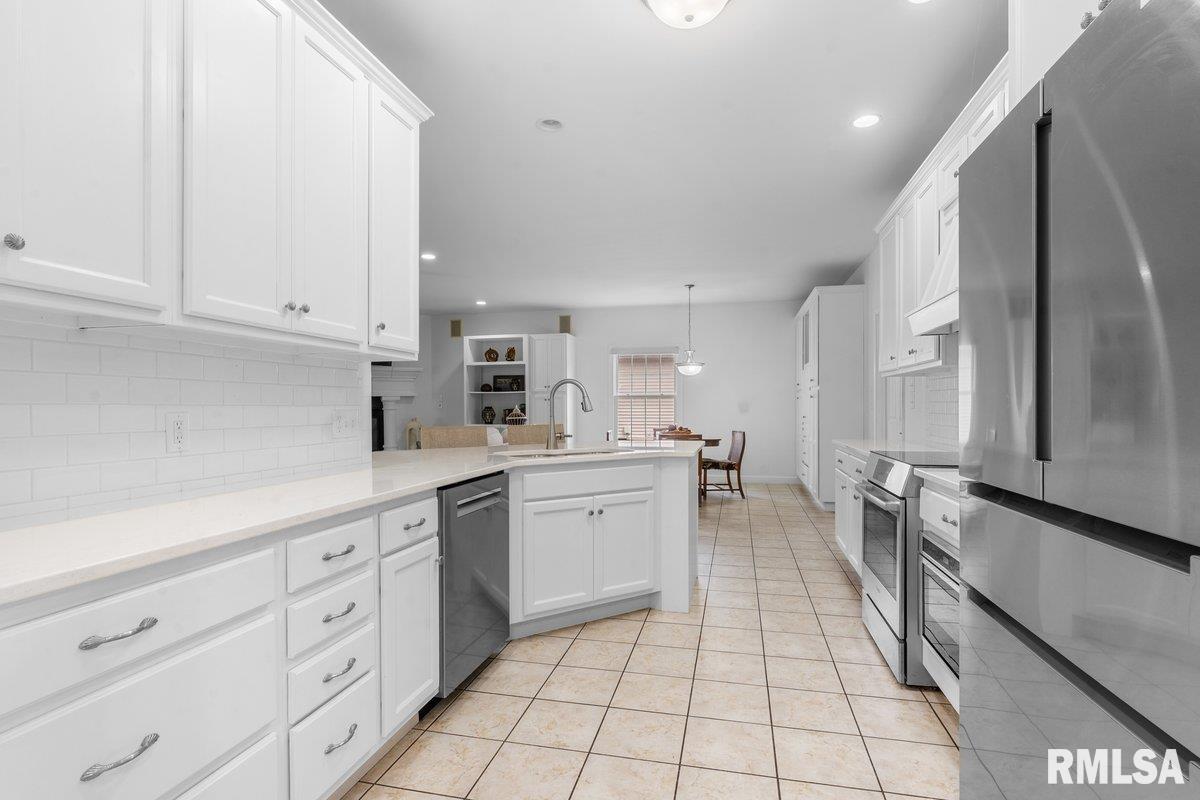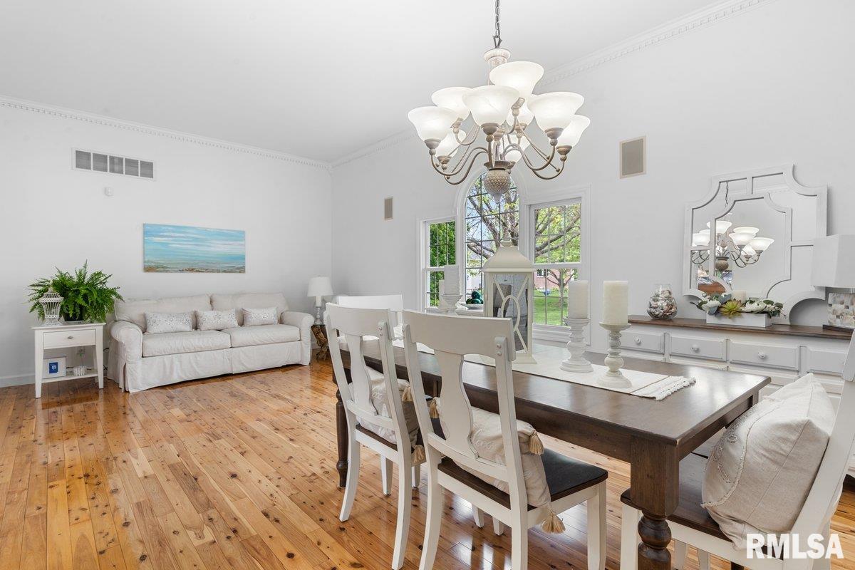 Exquisite home built in 2022, offering 2,629 square feet on the main level and a full unfinished basement just waiting for someone to finish. There are 2 egress windows and plumbing for a full bathroom in the basement. Step inside to a grand foyer with 2 architectural columns upon entry, and gorgeous hardwood flooring throughout most of the home. The hardwood floors complimented with ceiling variations and crown molding add a special charm. The spacious kitchen is a true centerpiece, showcasing crisp white cabinetry, newer quartz countertops and a stylish white backsplash, accented with stainless Bosch appliances that add a touch of class. Enjoy an extra large primary suite and bath with a jetted tub and walk in shower. The laundry room is phenomenal with major storage and a wash tub. Relax in your 3 season room that boast of panaramic views of the lake/pond from the back of this elegant home. Open space and water. Very peaceful. This home seamlessly blends modern luxury with timeless design, offering both beauty and functioinality in every detail.