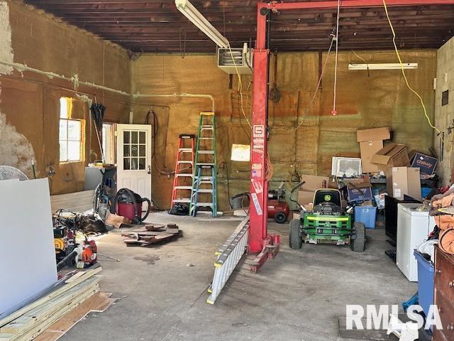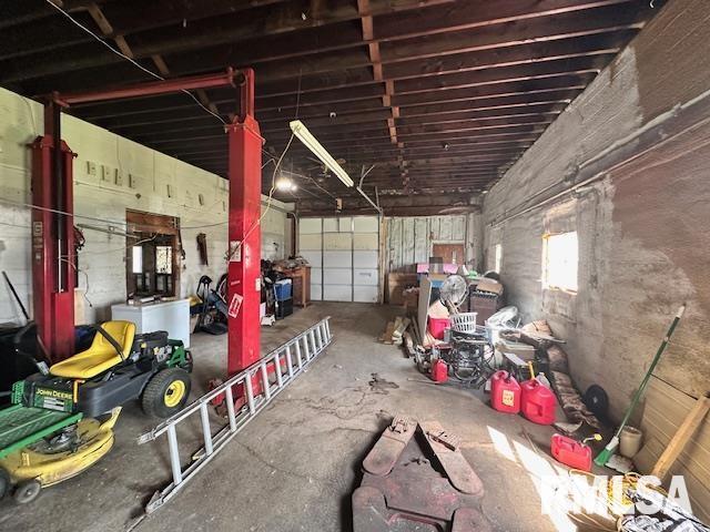 Offering something a little different! Property has a 1.5 story, 3 bedroom, 1 bath home with some updates. Zoned Residential plus a 40 x 48′ garage building, zoned Commercial. All situated on a 1.94 acre level lot. Surveyed and recorded in Nov. 2024. Survey available. Property is offered as One package and sold “As Is with no warranties or guarantees”. Updates to house include new gas furnace, shingles (tear off), soffit, fascia, 5 windows upstairs in 2023. When roof was replaced, the brick chimney was removed in attic. Sump pump, water heater, interior water lines in 2024. New 200 amp electrical service in April 2026. Garage is half cement block construction with a wood framed add on and was occupied by an auto mechanic repair shop a few years ago. Currently no utility services to building. Concrete floor and newer 10 x 10 insulated commercial grade door with opener and camera installed in 2024. The car lift in garage stays (sold as-is, current owner never used it). Cement block garage. Has an original flat roof with a hip roof built over it. Several possibilities for a new buyer since property has two separate driveway access and two assigned street addresses (819 & 825 Old West Locust). Note: property has a 20 ft. wide platted street. See survey. Washer, dryer, two video doorbells do not stay. Flagpole, flag and four area rugs stay. All information deemed accurate but not guaranteed. Property needs some work but has potential! Schedule an appointment and look it over.