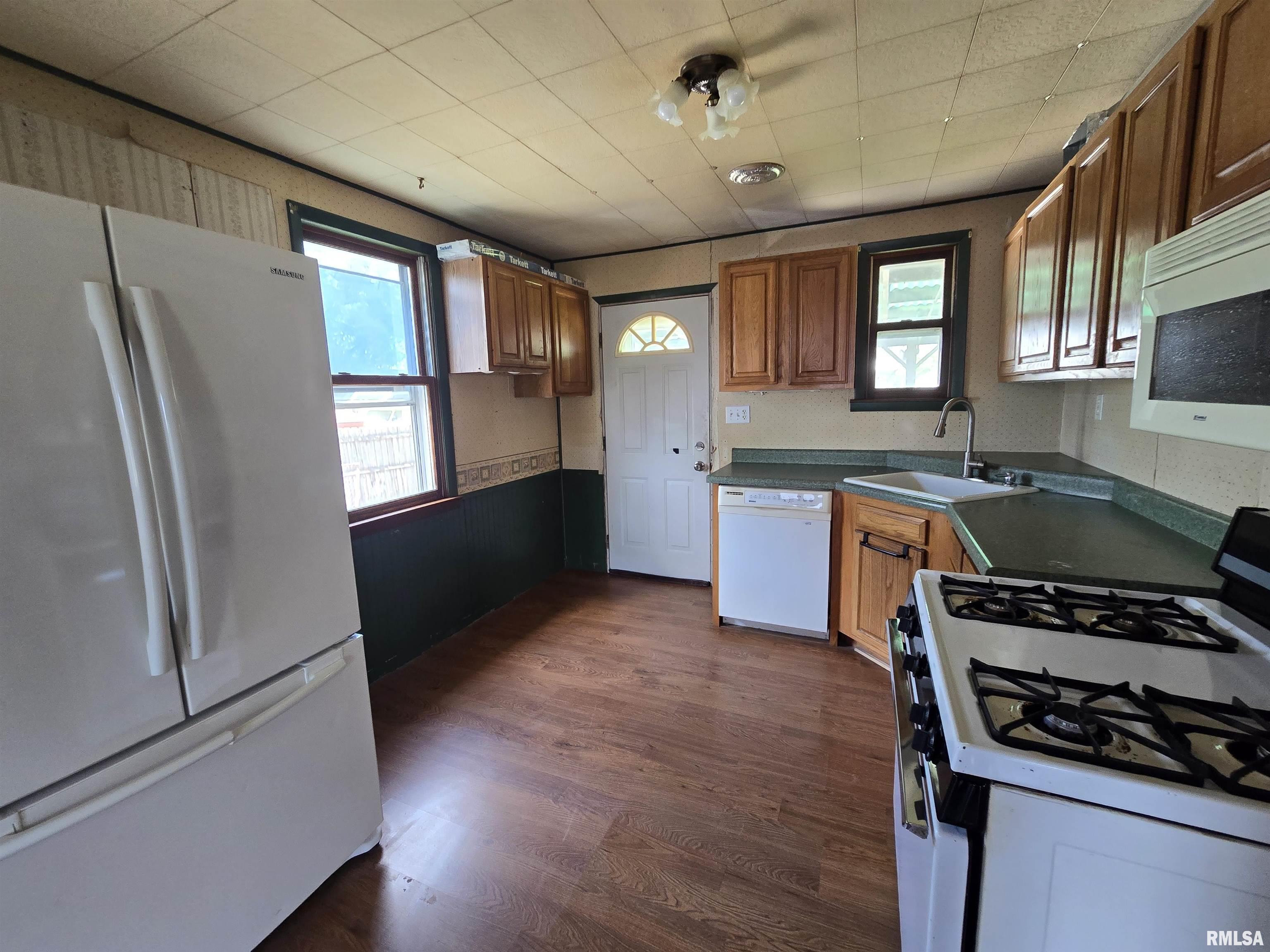 Here is a 2 bedroom ranch and with a little TLC and your finishing touches, you can make it your own. There is a new breaker box, large garage and a fenced yard. Appliances not warranted. Home sold as is.