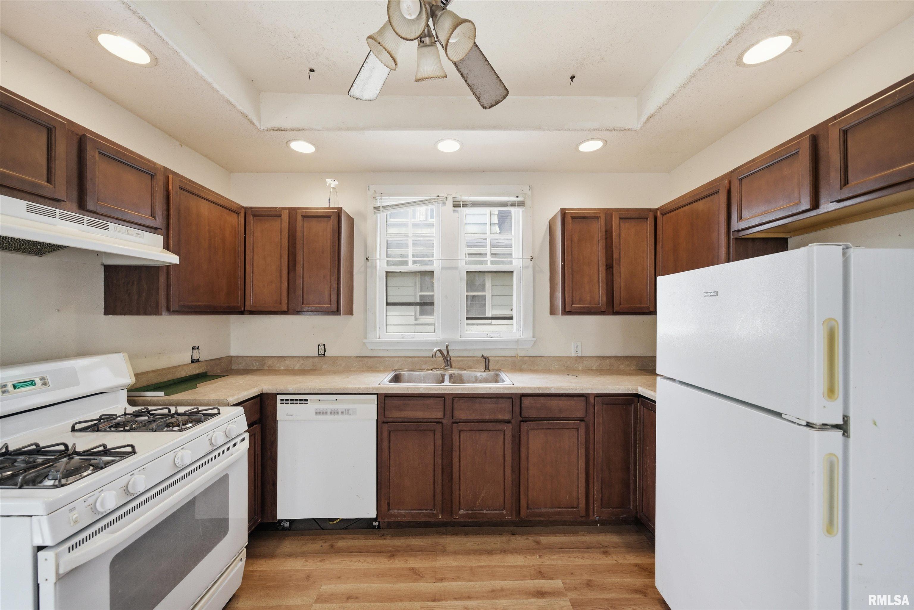 Located at 2701 N Dechman Ave in Peoria, this 3-bedroom, 1.5-bathroom bungalow is a solid opportunity for investors or DIY buyers. The home features original hardwood floors, traditional built-in cabinetry, and a bright bay window in the formal dining area. With a functional galley kitchen, a welcoming front porch, and a detached garage, the property offers a great foundation for a refresh.